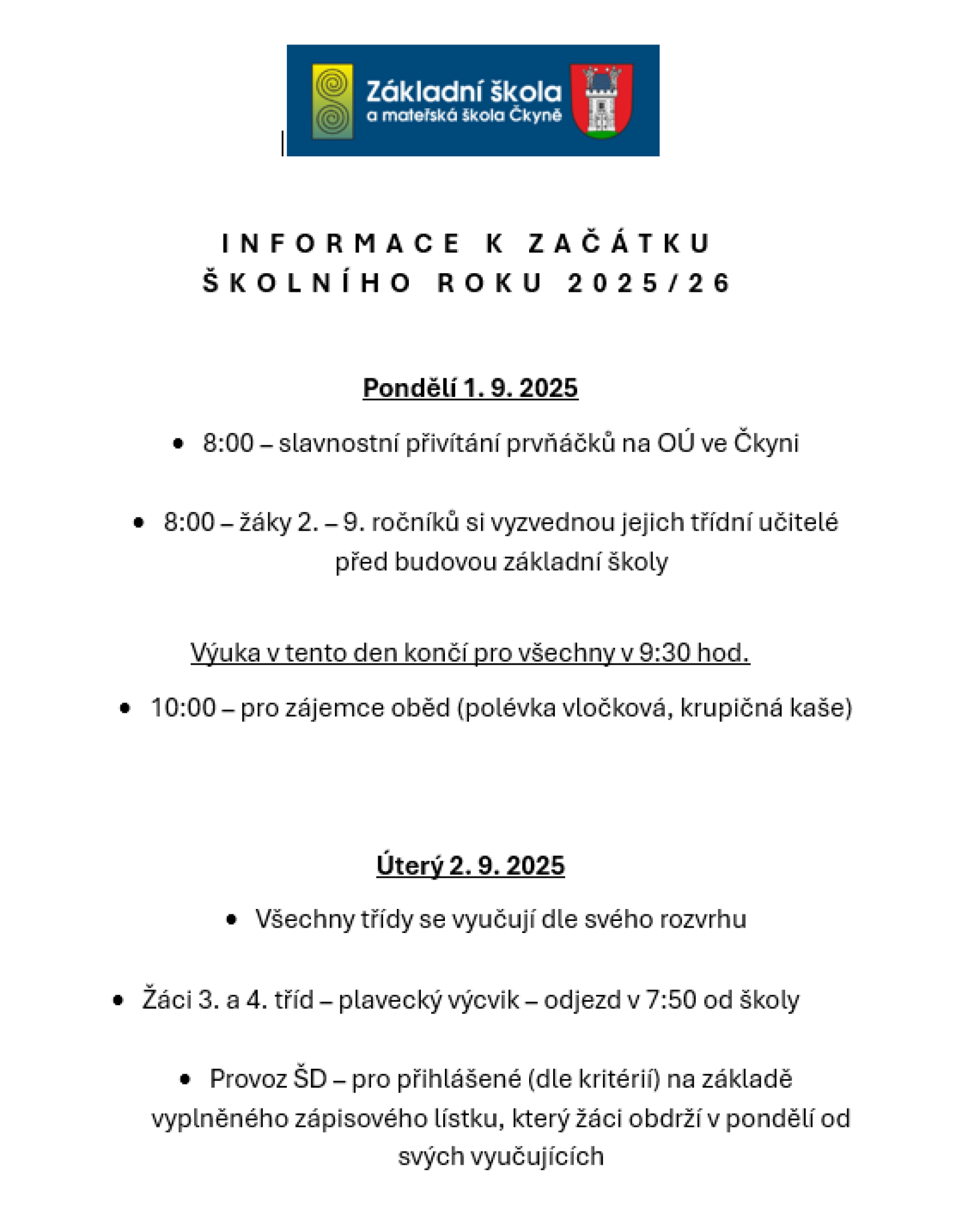 Začátek školního roku 2025/26