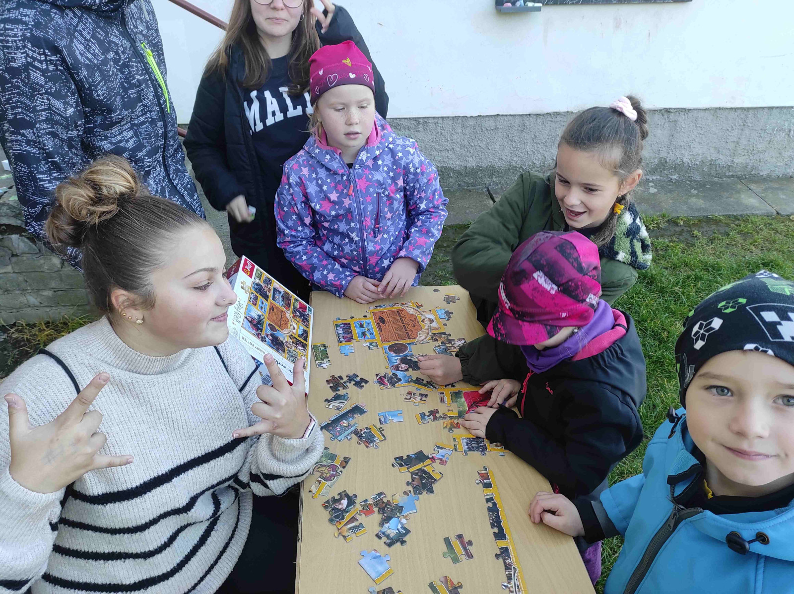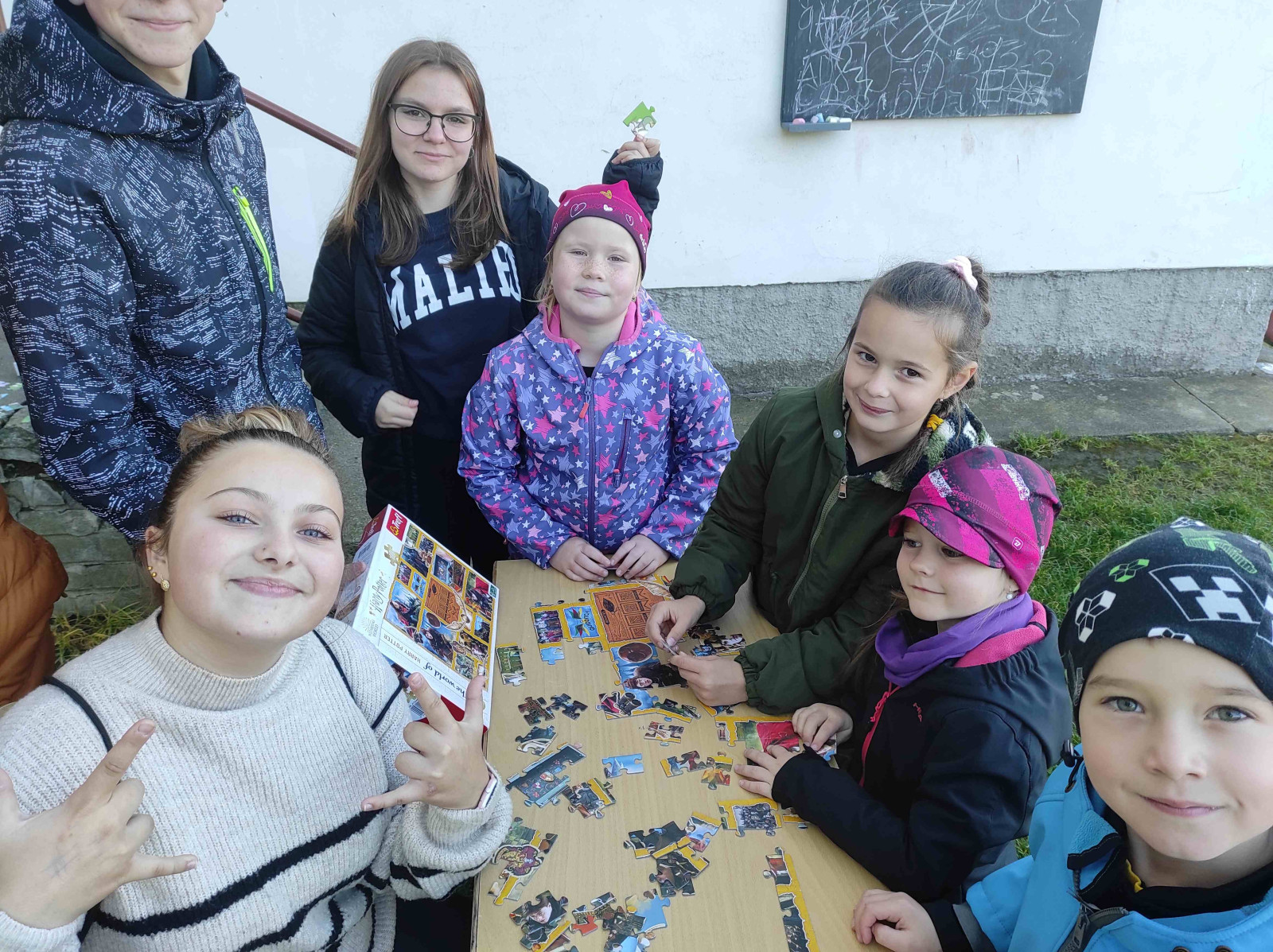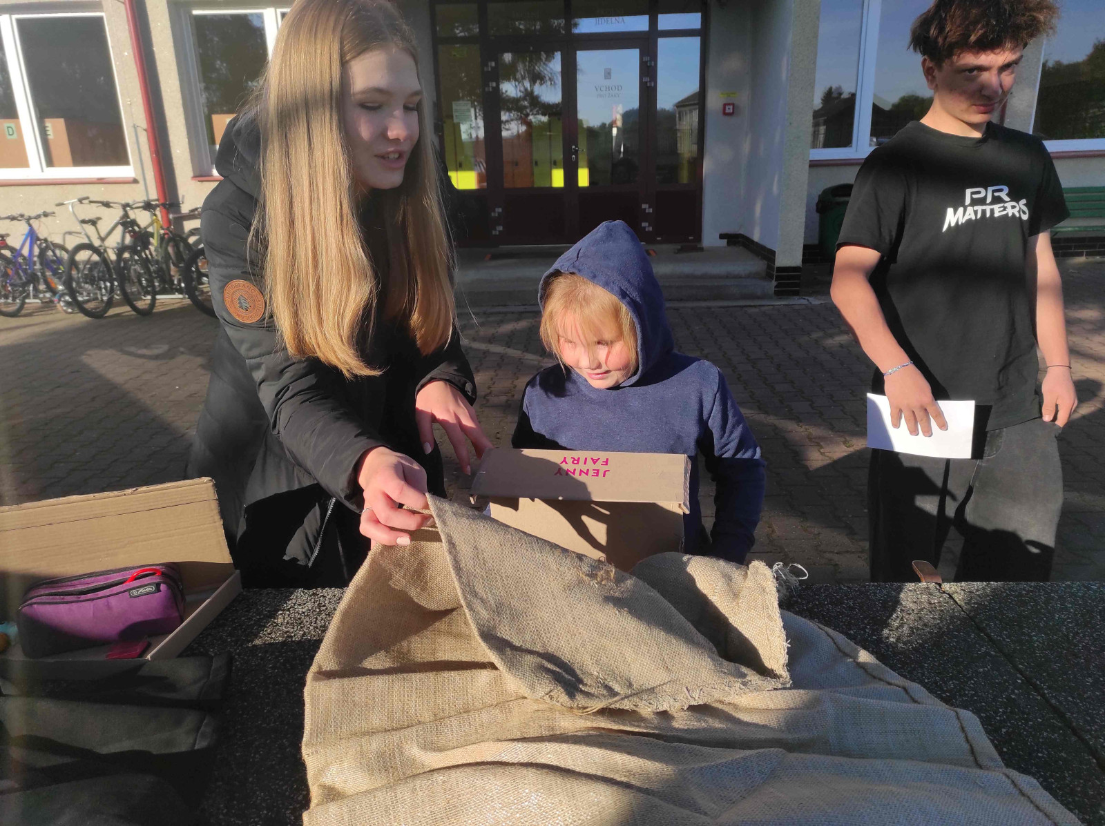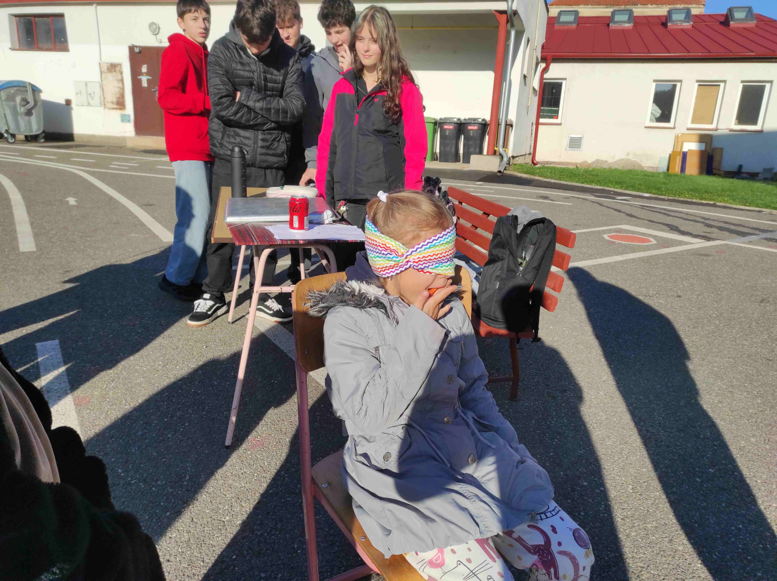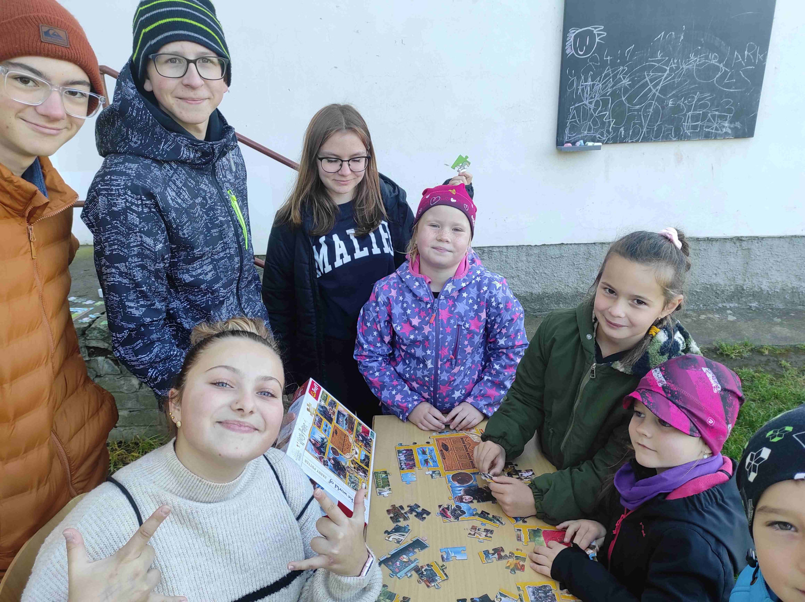 Dnešek byl pro nás prvňáky velmi důležitý. Stali jsme se totiž těmi pravými školáky. Přišli za námi ostřílení deváťáci a připravili si pro nás různé herní aktivity. Na označených stanovištích v celém areálu školy jsme pod jejich vedením plnili zajímavé úkoly. Museli jsme po hmatu poznávat některé školní pomůcky, trefovali jsme se míčky do lahvových terčů, skákali jsme od mety k metě v pytlích, skládali jsme puzzle na rychlost, svou zručnost jsme si vyzkoušeli ve štafetovém běhu s míčkem na lžíci. Ještě než jsme do soutěží vyrazili, paní učitelka nás chtěla potrápit skládáním slov ze slabik, které jsme museli pokládat na stopy. Ty byly rozházené po koberci v družině. Jenže na nás si nepřišla, my totiž skládání slov hodně trénujeme v hodinách ČJ. To horší bylo házet provazovými kroužky na kříž s očíslovanými terči a sčítaly se nám body za zásah. To si s námi vyzkoušeli i deváťáci a nebylo to jednoduché ani pro ně, protože ti museli házet z větší vzdálenosti. A tak nám celé veselé dopoledne uteklo, ani nevíme jak. Na závěr nám naši starší parťáci udělali bránu ze svých rukou, předali nám stužky a pamětní listy a dvorní rytíř od krále Oty Prvního nás slavnostně pasoval na školáky prvňáky. Král Ota První nás bude provázet Živou abecedou a hlavně Slabikářem po celý školní rok. Už nám napsal několik dopisů a my se pilně učíme písmena, která nám v učebnici připravuje. Museli jsme naše starší kamarády také něčím obdarovat a potěšit, a tak jsme jim jako poděkování namalovali obrázky a zazpívali jim písničku o tom, jak jsme se rozloučili se školkou a hrdě se stali školáky prvňáky.