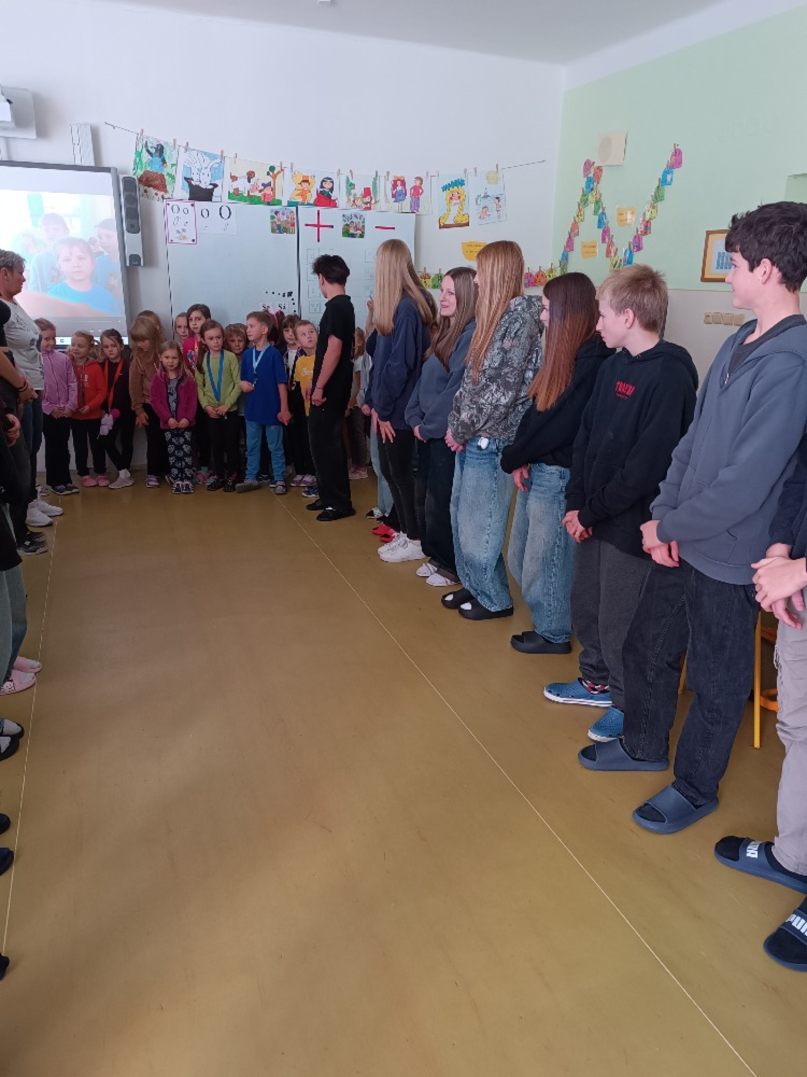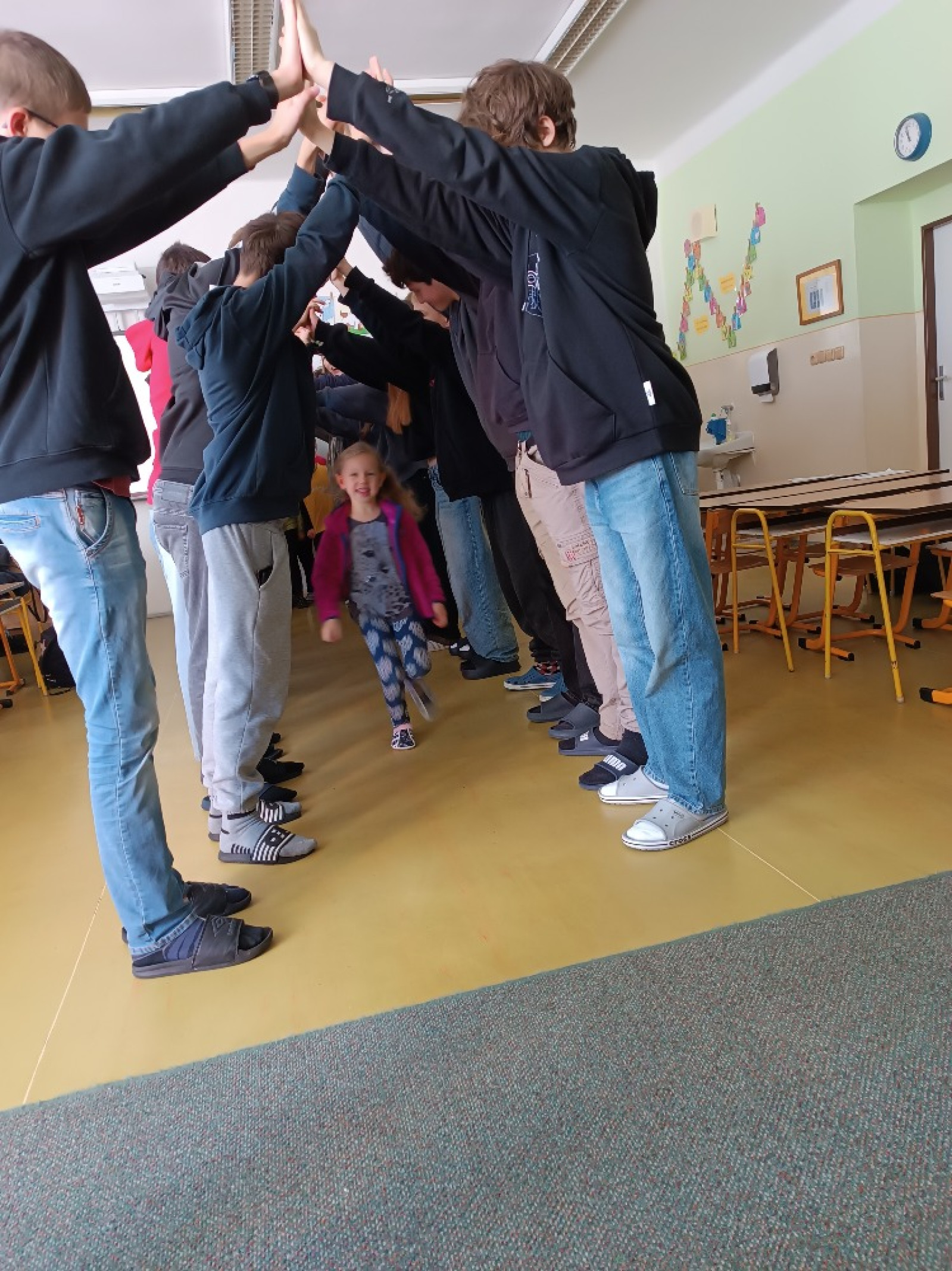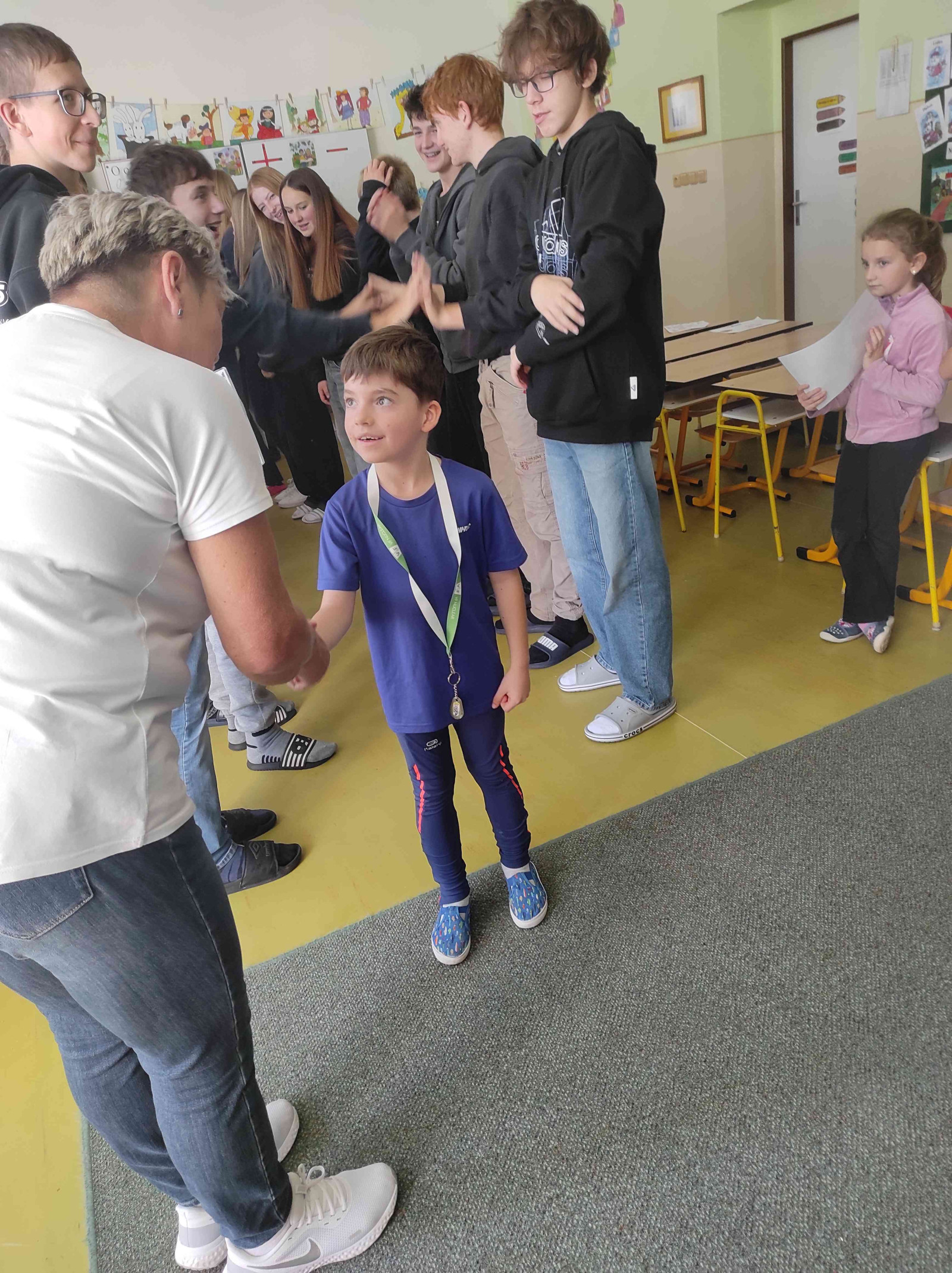 Kamarádi deváťáci, děkujeme Vám za dnešní příjemně strávený den, zdraví prvňáčci.