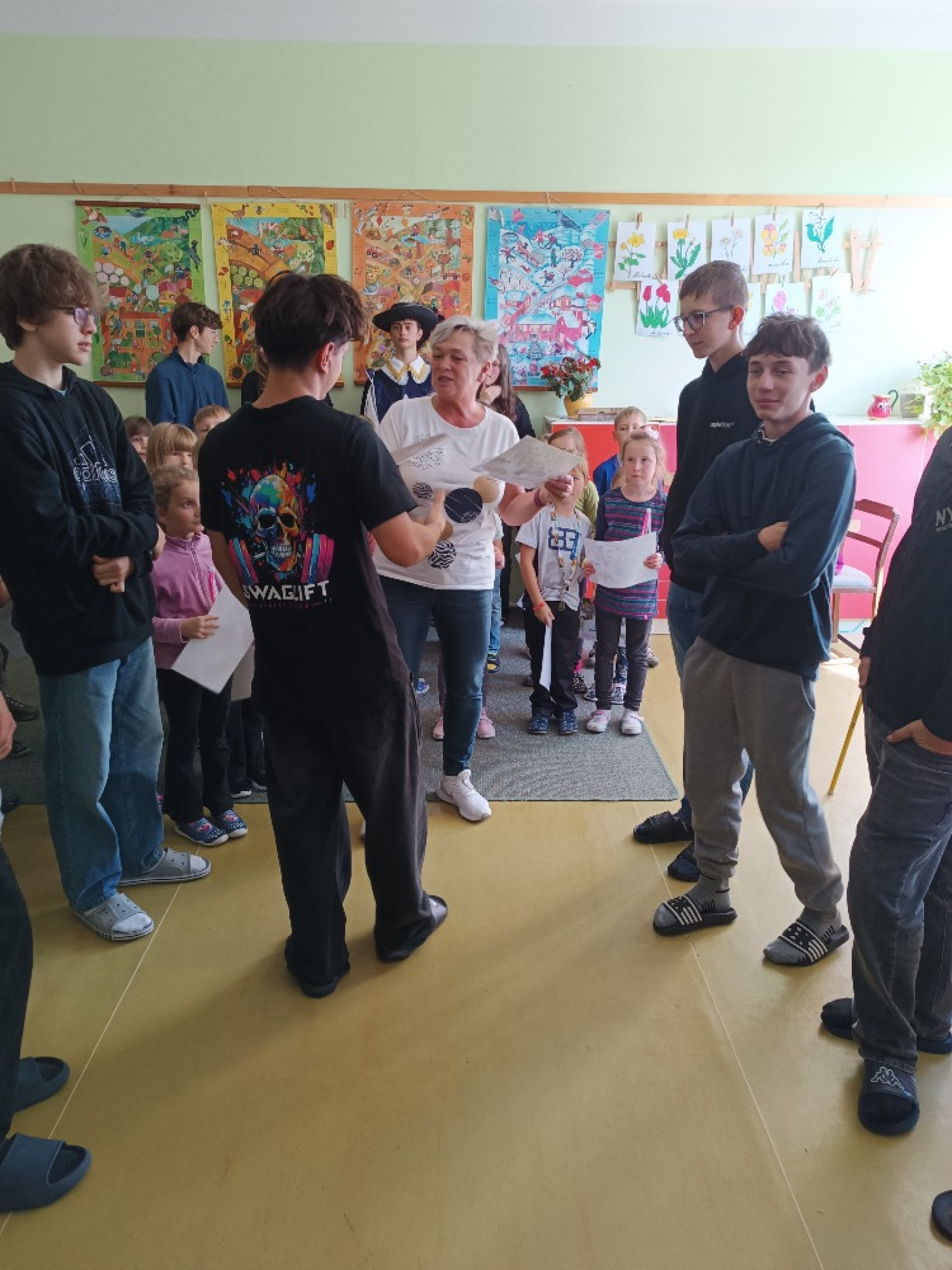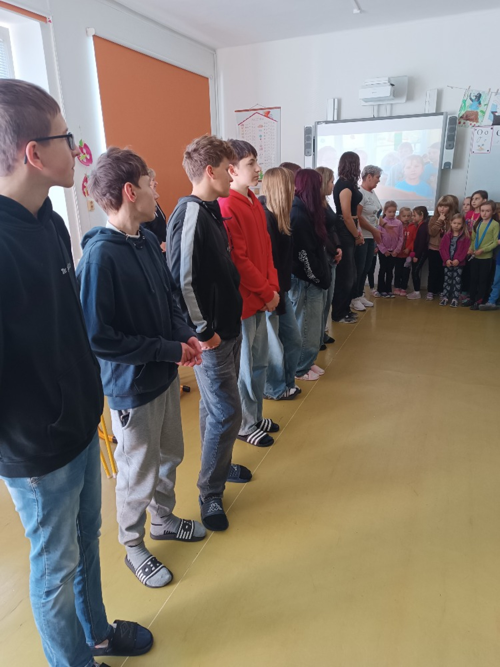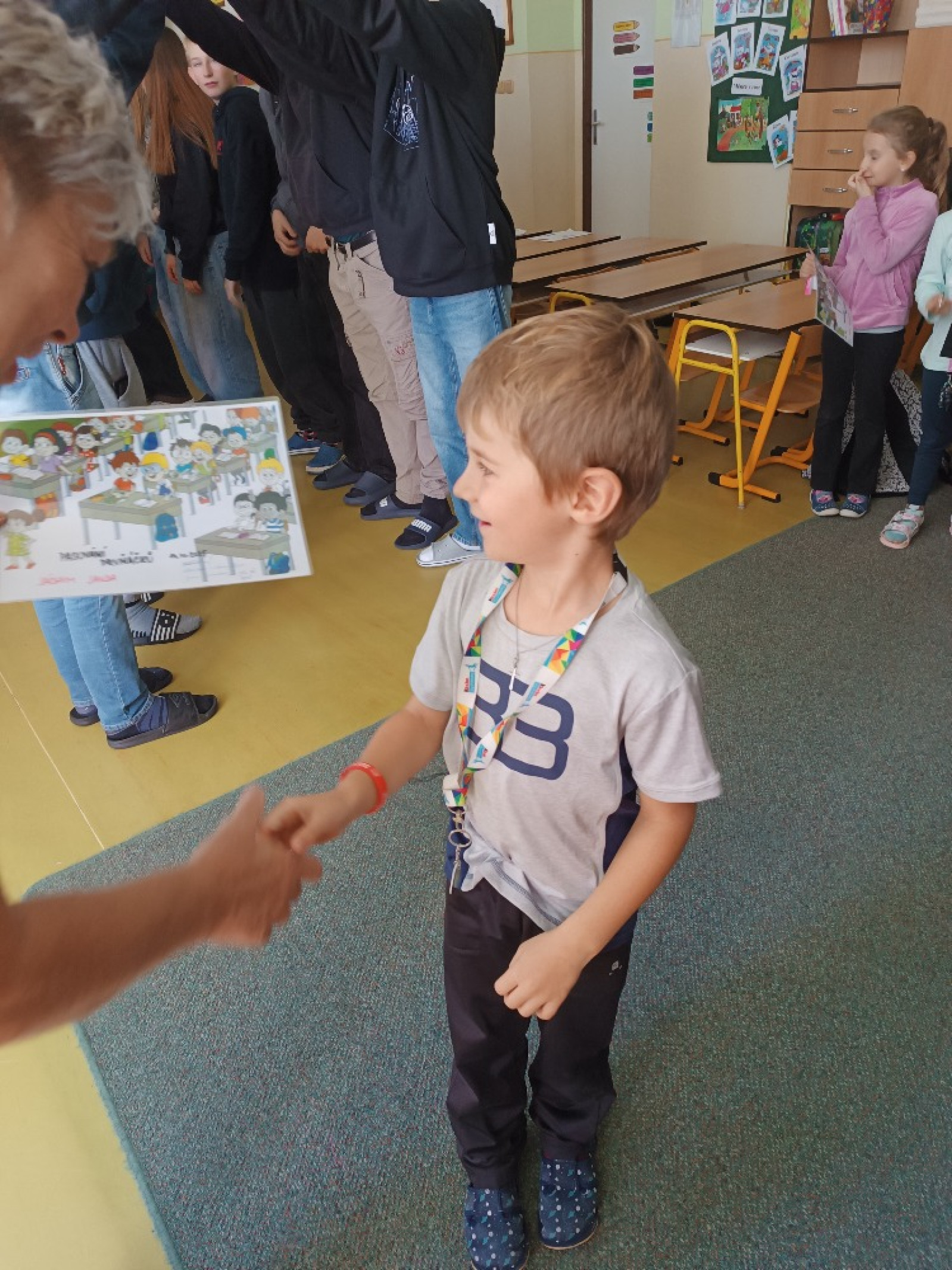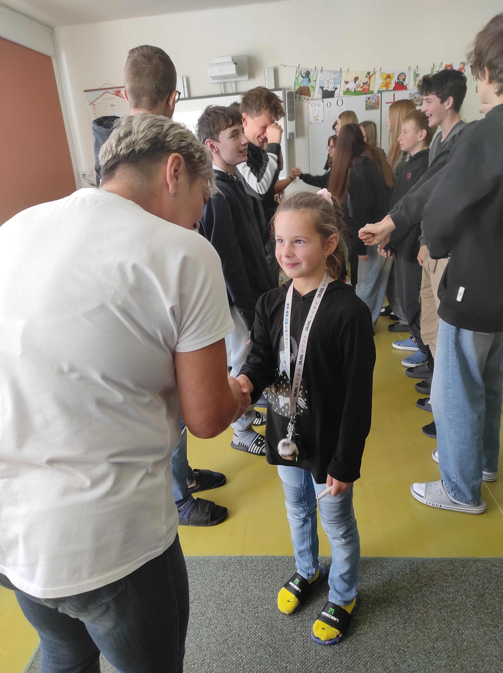 Kamarádi deváťáci, děkujeme Vám za dnešní příjemně strávený den, zdraví prvňáčci.