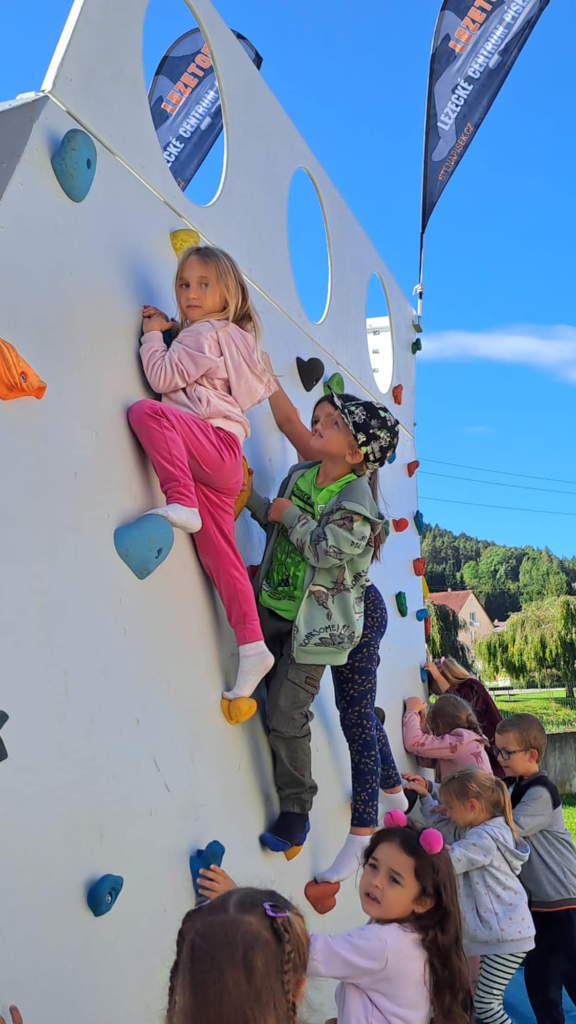Projektový den na ZŠ navštívili i naši předškoláci, zvládli projít všemi stanovišti a nejvíce se jim samozřejmě líbilo na lezecké stěně :-)