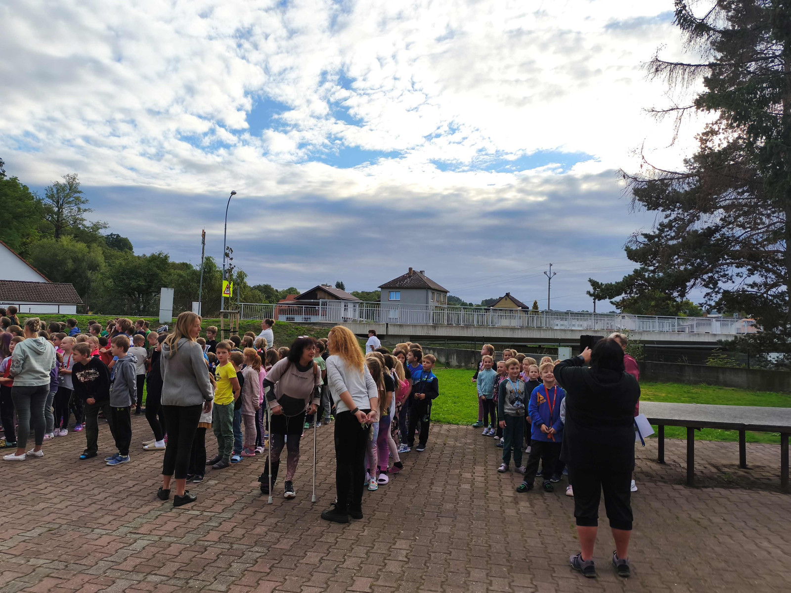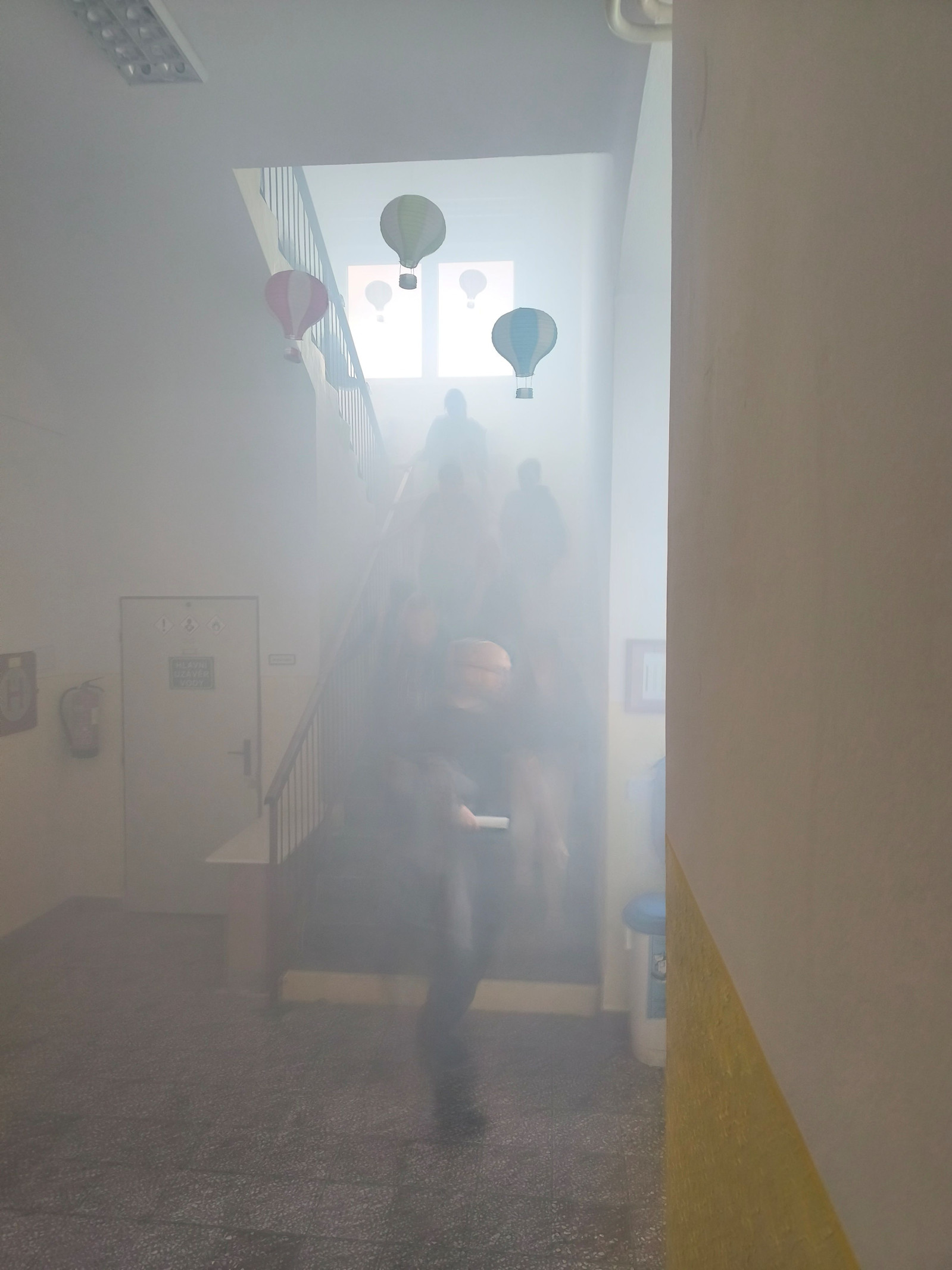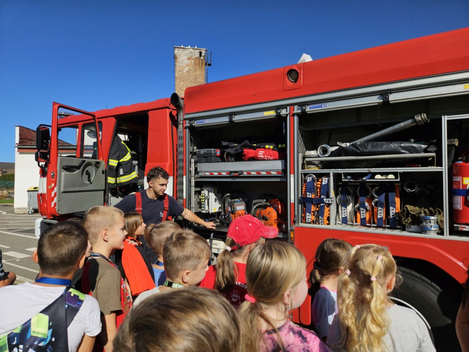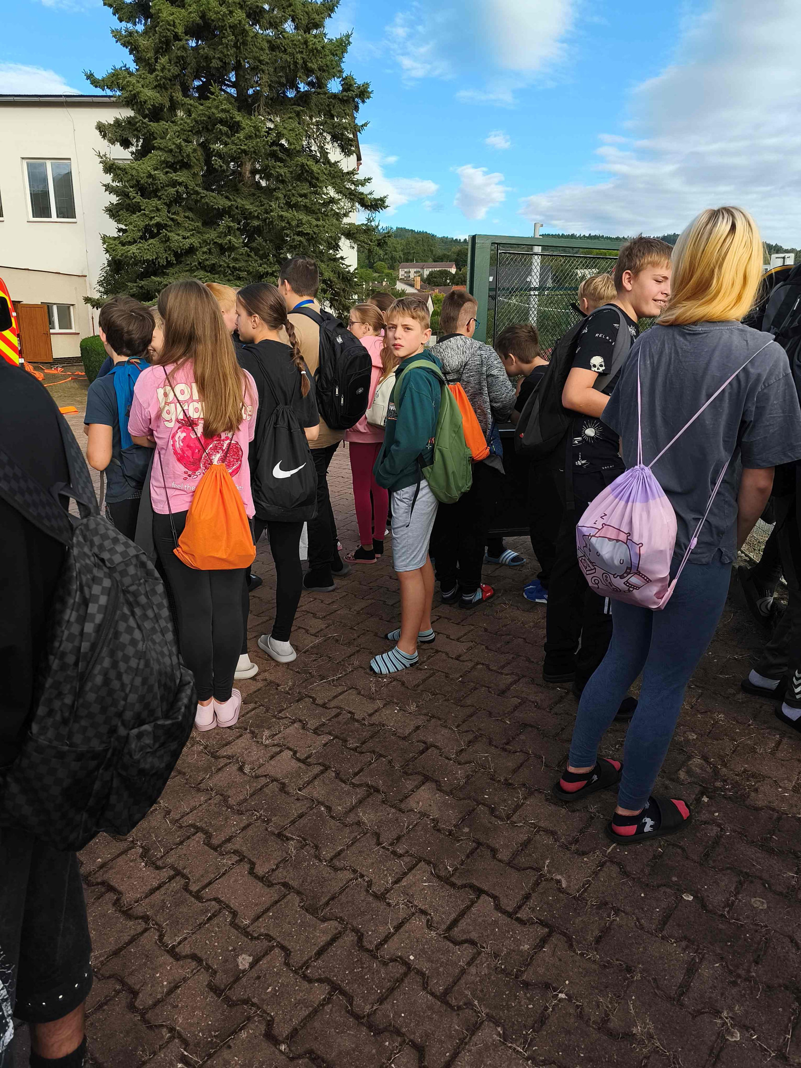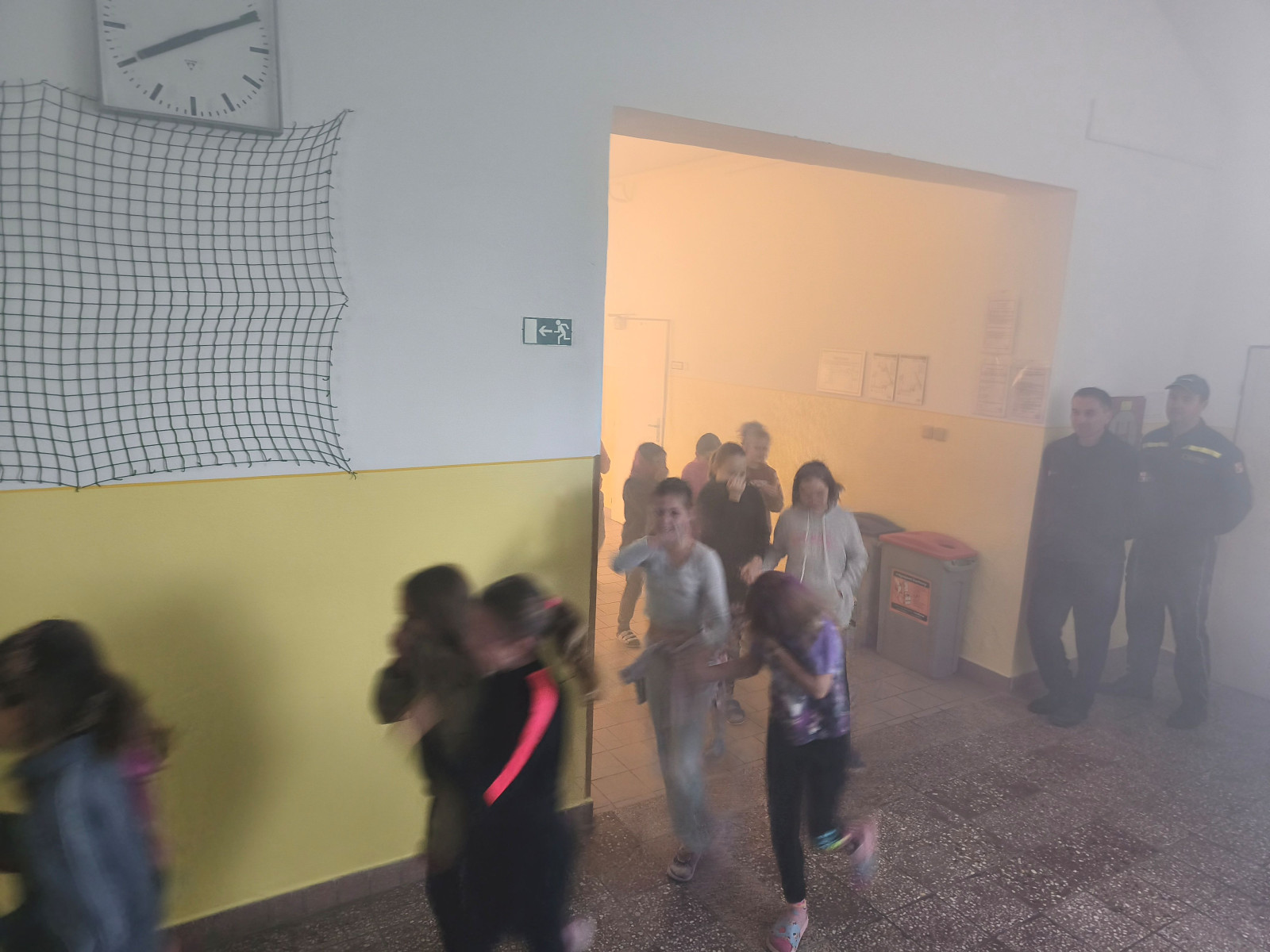 „Poplach! Všichni opusťte budovu školy!“ ozvalo se ze školního rozhlasu. Tak začalo vyučování ve čtvrtek 18. září. Celá škola zahájila projektový den s Integrovaným záchranným systémem. 30 zaměstnanců a 270 dětí školy se shromáždilo před školou a ze školního dvoru sledovali cvičný zásah profesionálních hasičů HZS Vimperk. Aby bylo vše autentické, hasiči zakouřili celý pavilon II. stupně, abychom si evakuaci mohli vyzkoušet i v podmínkách, kdy jsou chodby plné kouře a není vidět na krok.