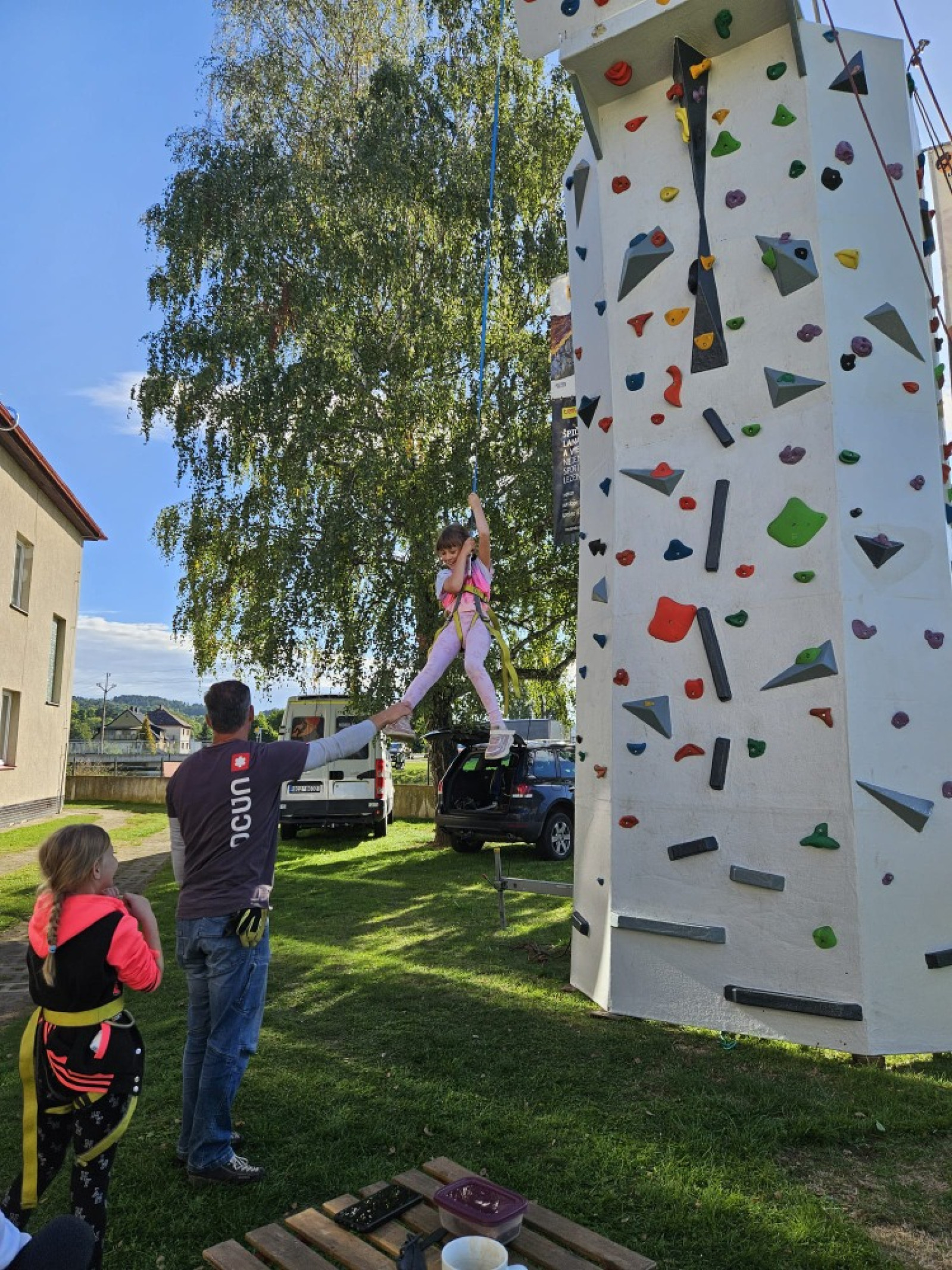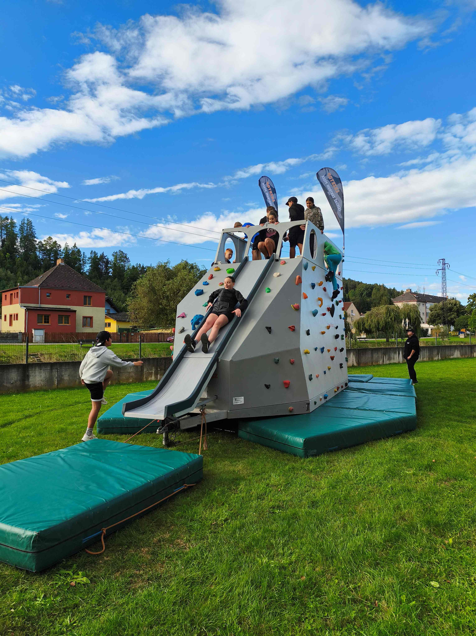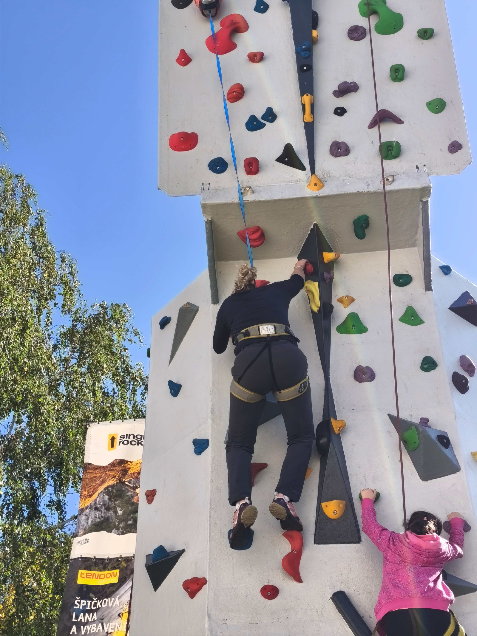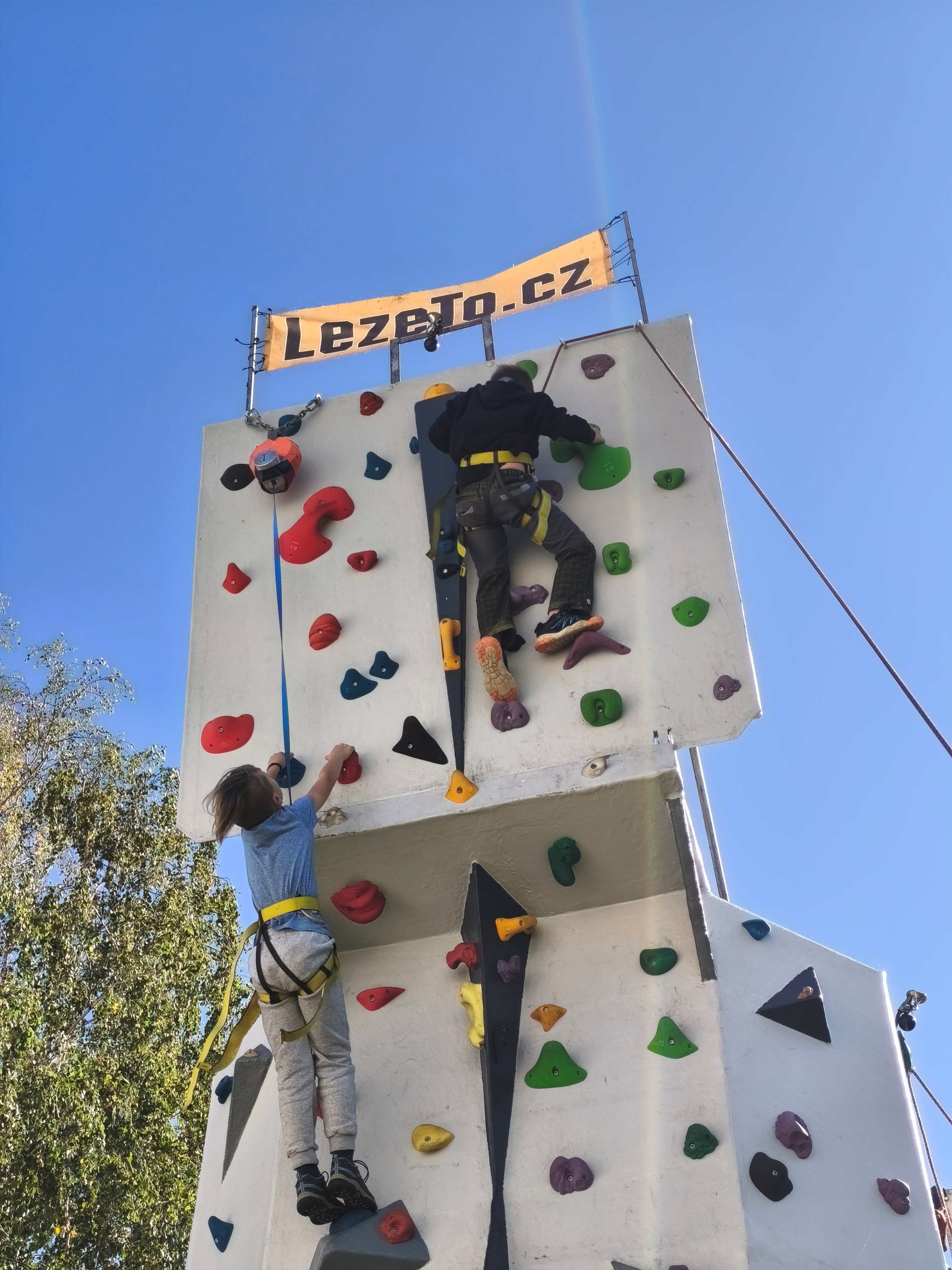 Horolezecká stěna nebyla součástí IZS, ale stanoviště, kde jsme si vyzkoušeli naši fyzickou zdatnost. Některé děti ukázaly odvahu a vyšplhaly až na vrchol, mnozí z nás překonali vlastní strach a dokázali si víc, než si mysleli. To platí i pro naše učitele. 😊