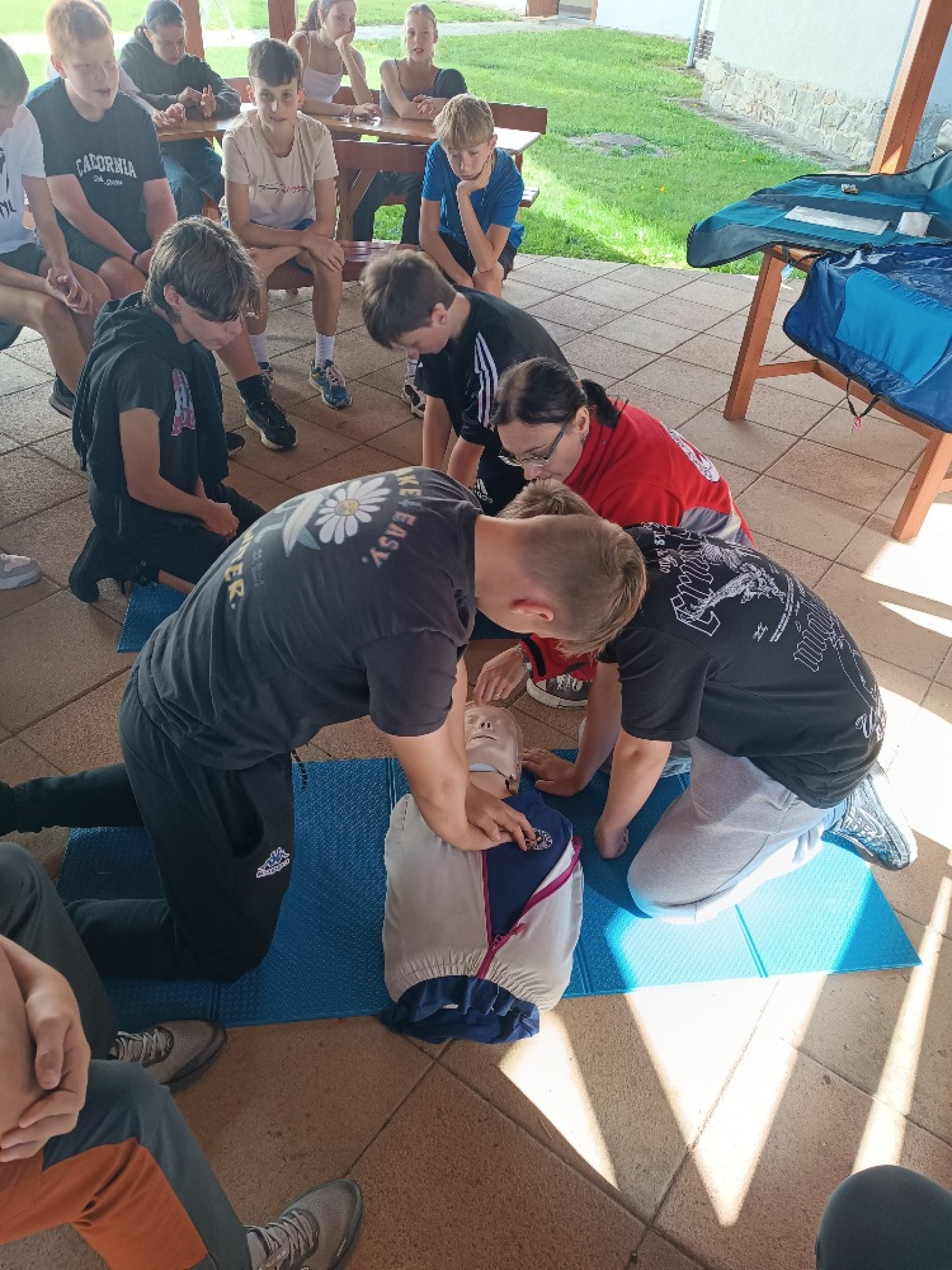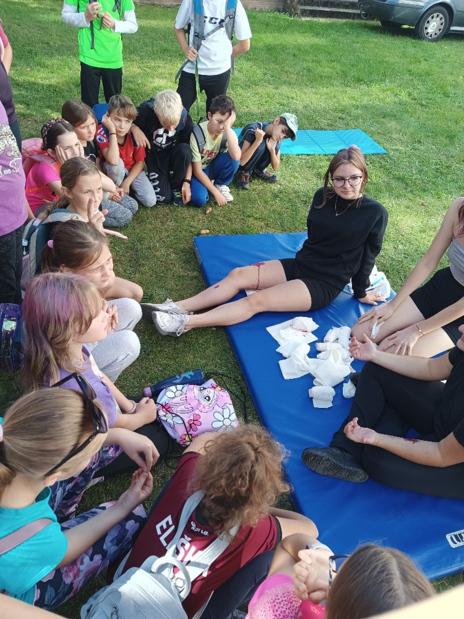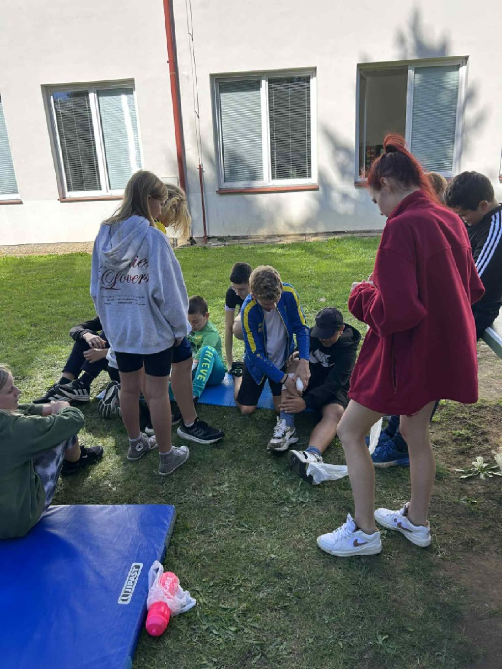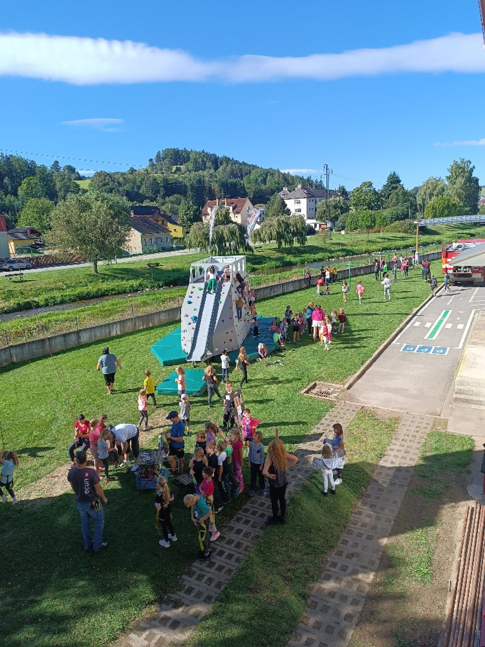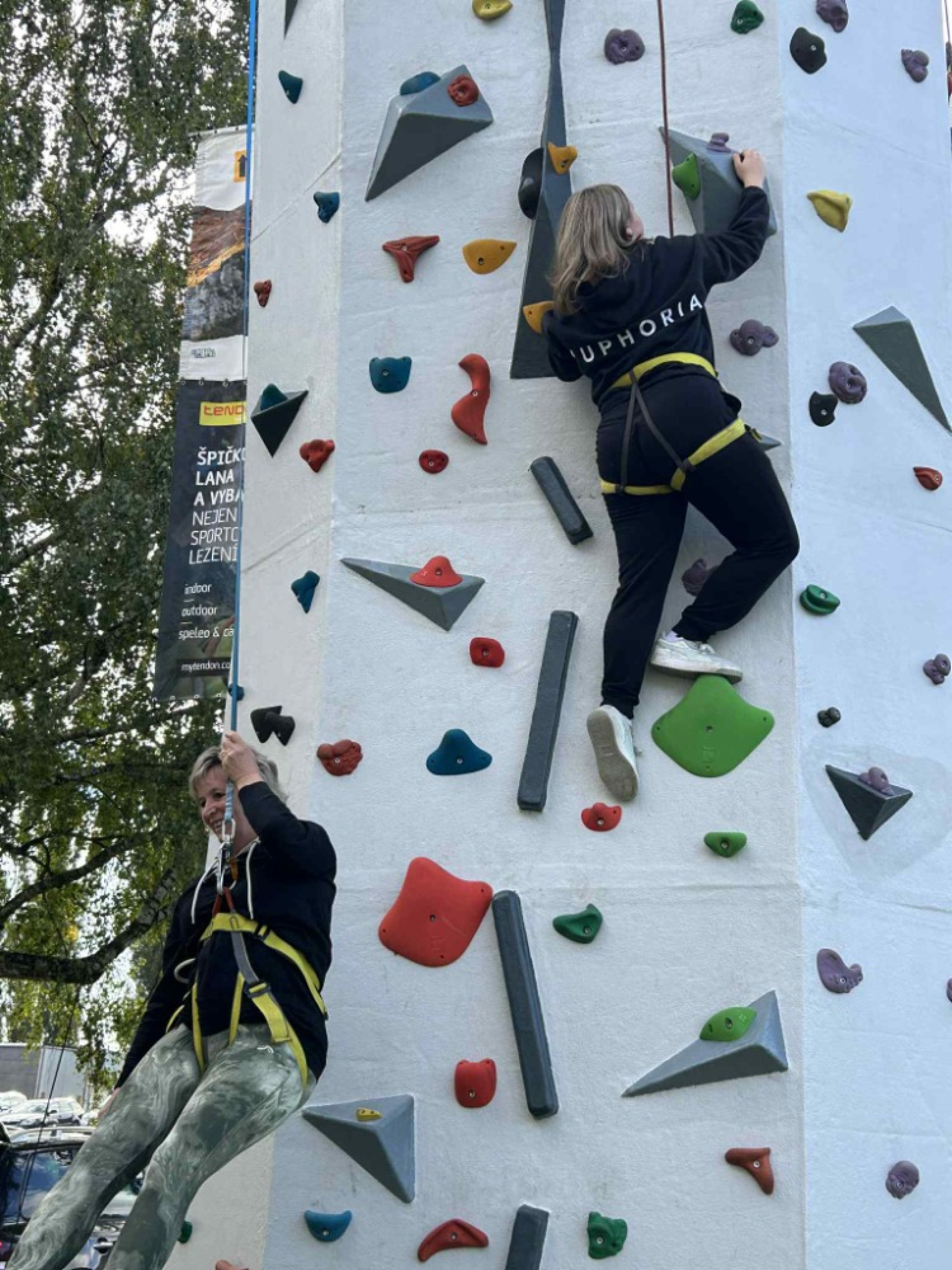Horolezecká stěna nebyla součástí IZS, ale stanoviště, kde jsme si vyzkoušeli naši fyzickou zdatnost. Některé děti ukázaly odvahu a vyšplhaly až na vrchol, mnozí z nás překonali vlastní strach a dokázali si víc, než si mysleli. To platí i pro naše učitele. 😊