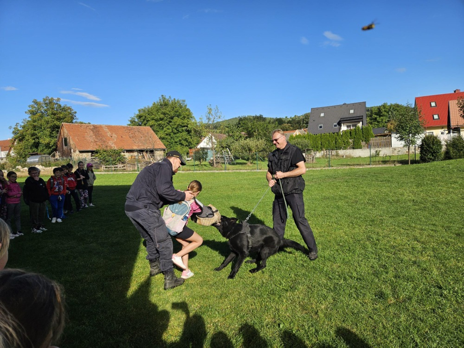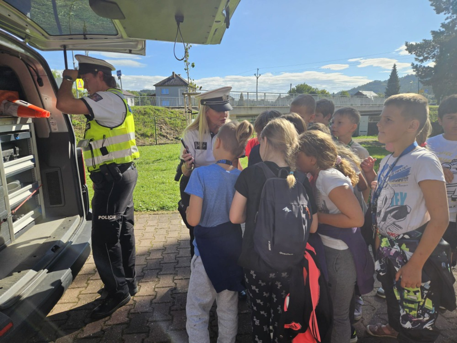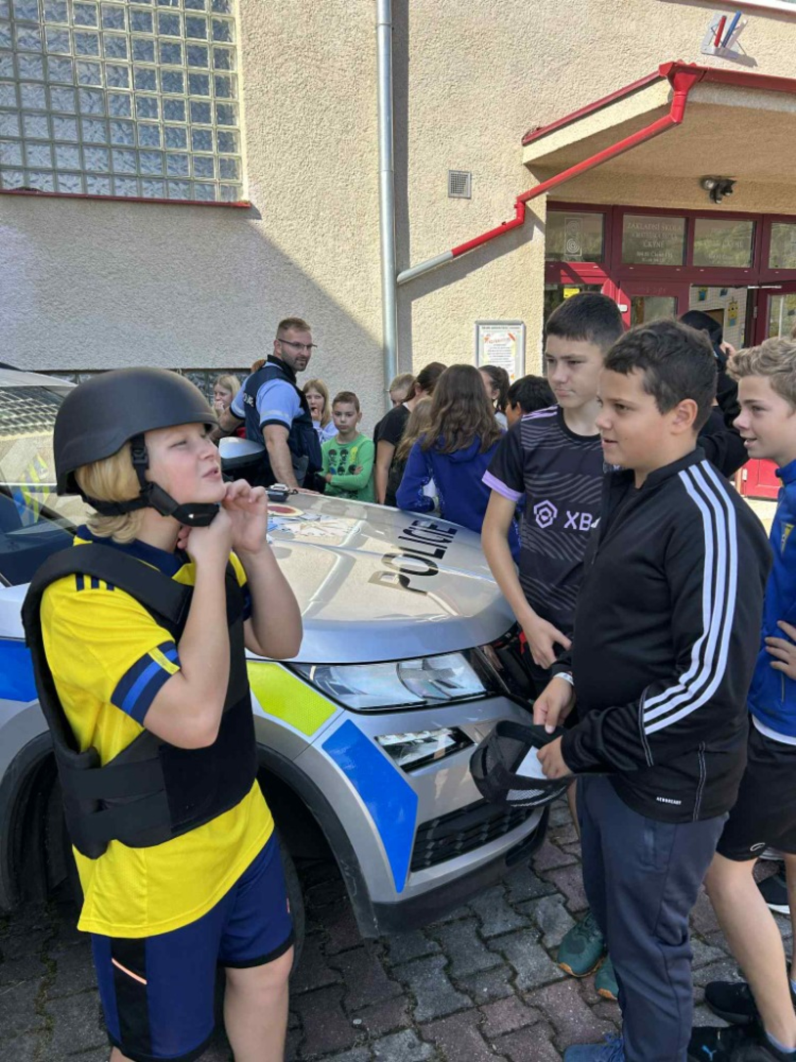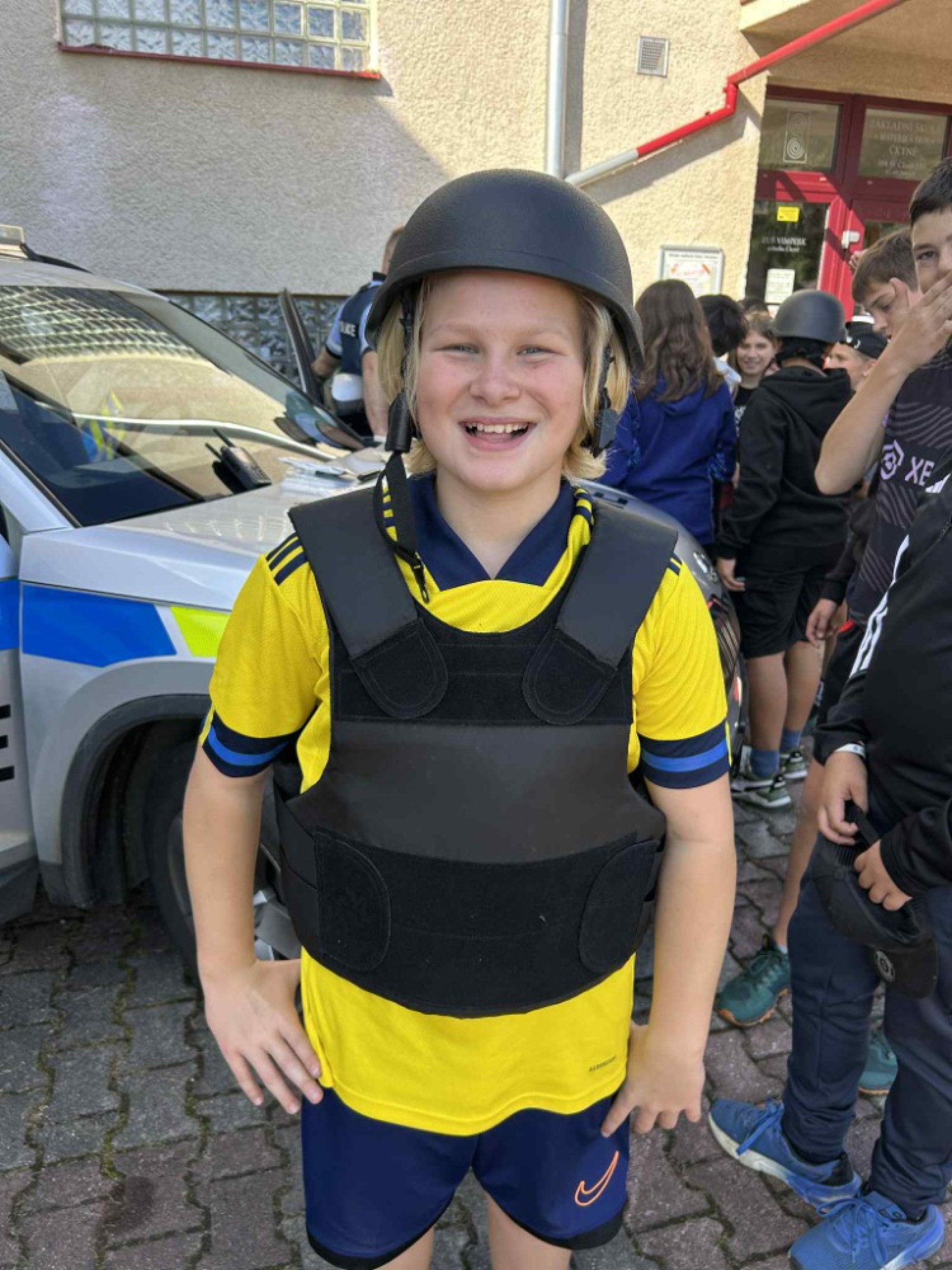 Celé dopoledne pokračovalo v aktivitách, které rozšířily naše znalosti a zkušenosti týkající se profesionálního hasičského sboru, preventistů a vyšetřovatelů HZS, ale i SDH Čkyně, Policie ČR Vimperk, Dopravní policie, psovodů Policie ČR a Českého červeného kříže. Třídy prošly celkem 10 stanovišti, která zajišťovaly složky IZS. Akce byla zaměřena tak, abychom si vše vyzkoušeli na vlastní kůži. Dávali jsme první pomoc, oblékali jsme si policejní a hasičskou výbavu, procházeli dráhu s brýlemi simulující požití návykových látek, zhlédli ukázku práce policejních psů, stříleli z NERF pistolí a vzduchovek, pomocí proudnic SDH Čkyně stříkali vodu na terče a „foukali“ do alkoholtestru.