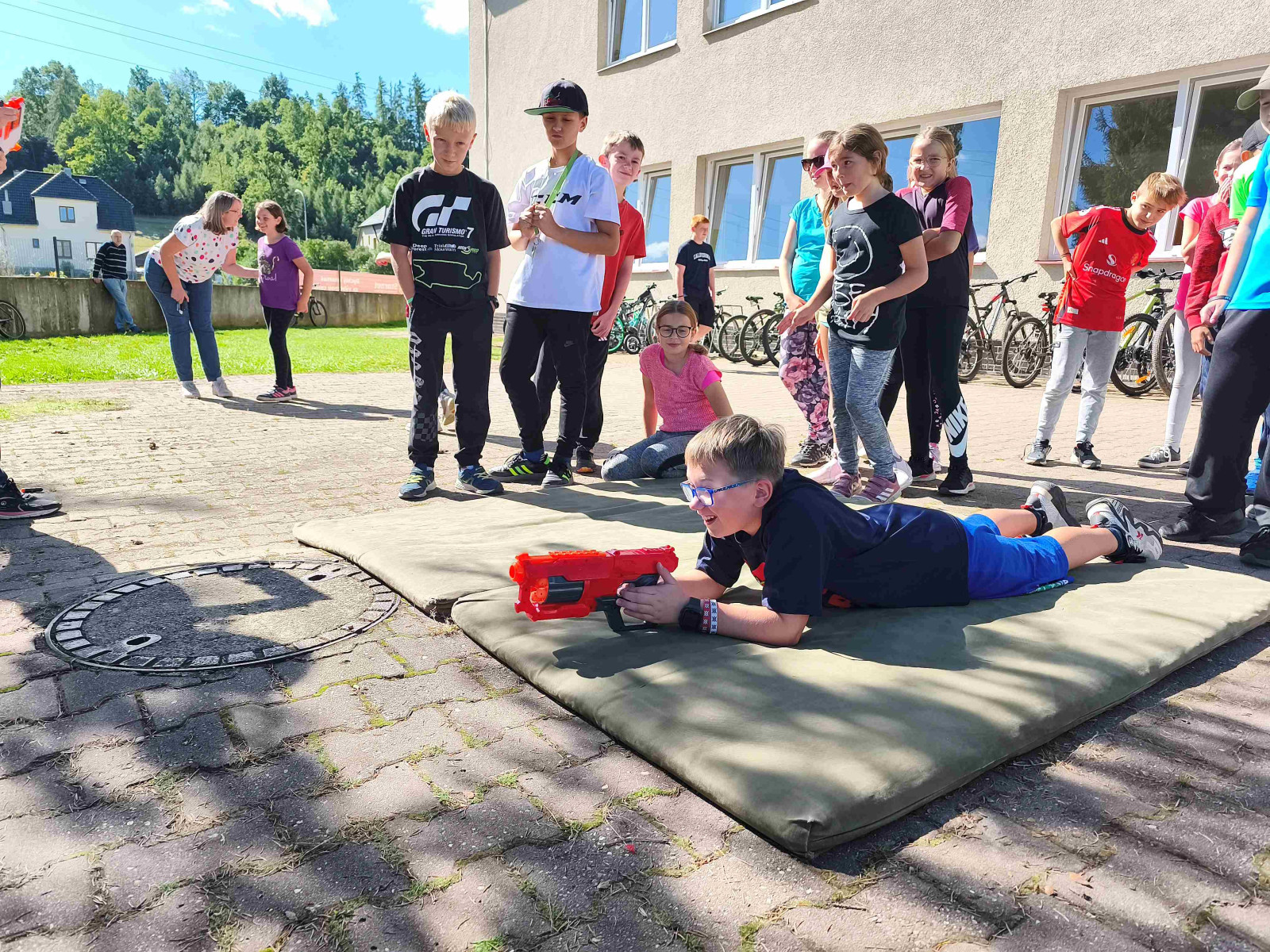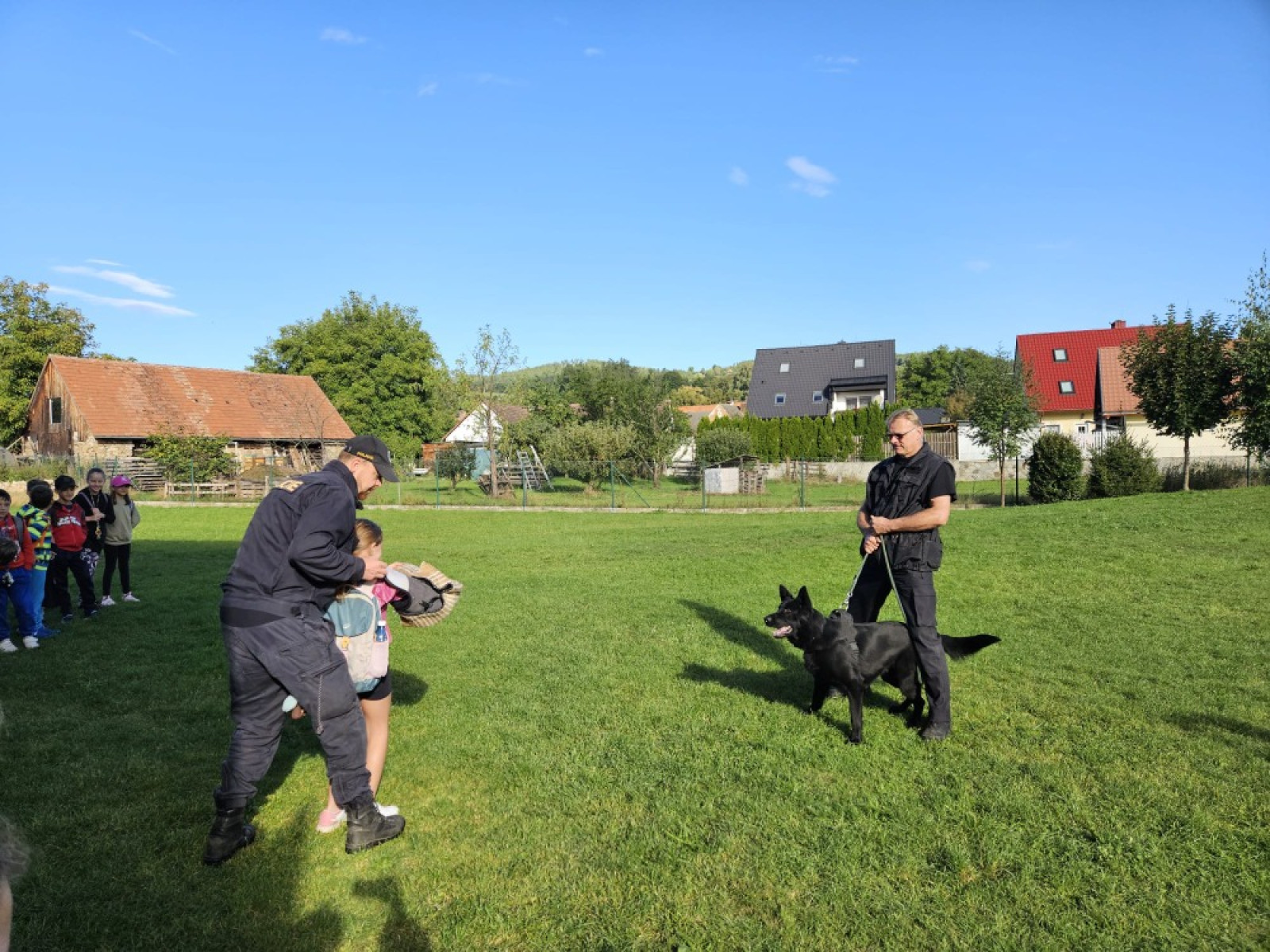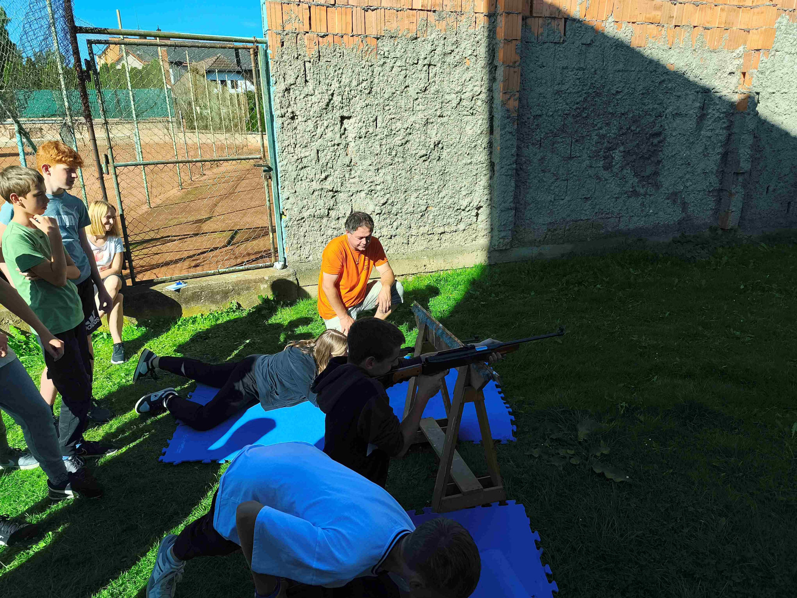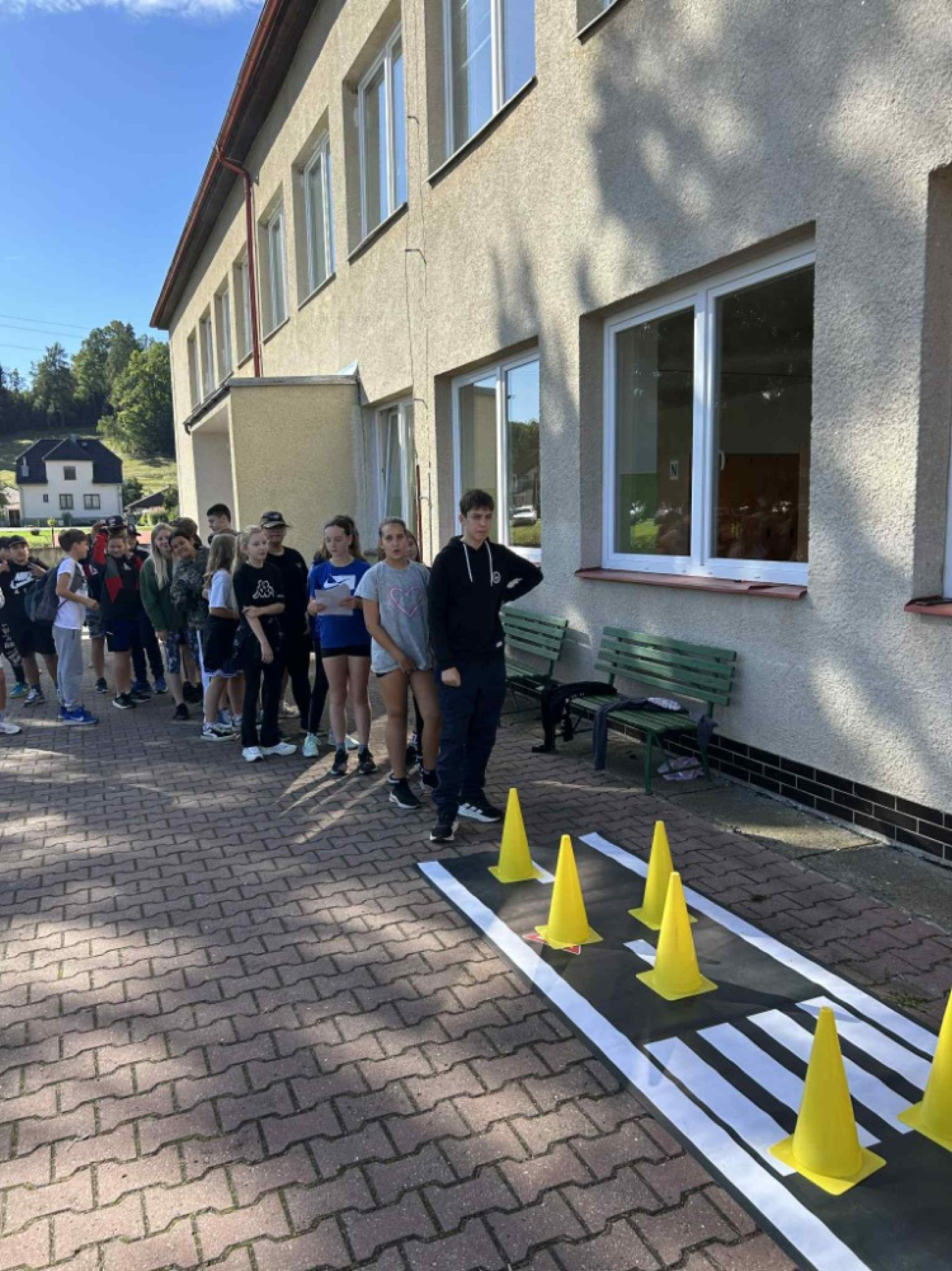 Celé dopoledne pokračovalo v aktivitách, které rozšířily naše znalosti a zkušenosti týkající se profesionálního hasičského sboru, preventistů a vyšetřovatelů HZS, ale i SDH Čkyně, Policie ČR Vimperk, Dopravní policie, psovodů Policie ČR a Českého červeného kříže. Třídy prošly celkem 10 stanovišti, která zajišťovaly složky IZS. Akce byla zaměřena tak, abychom si vše vyzkoušeli na vlastní kůži. Dávali jsme první pomoc, oblékali jsme si policejní a hasičskou výbavu, procházeli dráhu s brýlemi simulující požití návykových látek, zhlédli ukázku práce policejních psů, stříleli z NERF pistolí a vzduchovek, pomocí proudnic SDH Čkyně stříkali vodu na terče a „foukali“ do alkoholtestru.