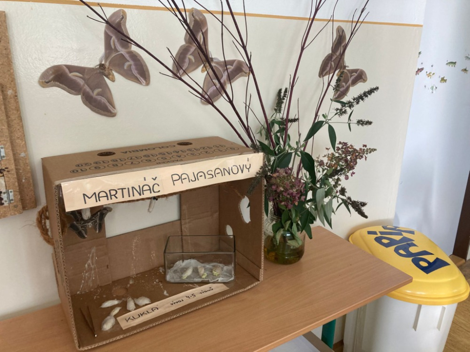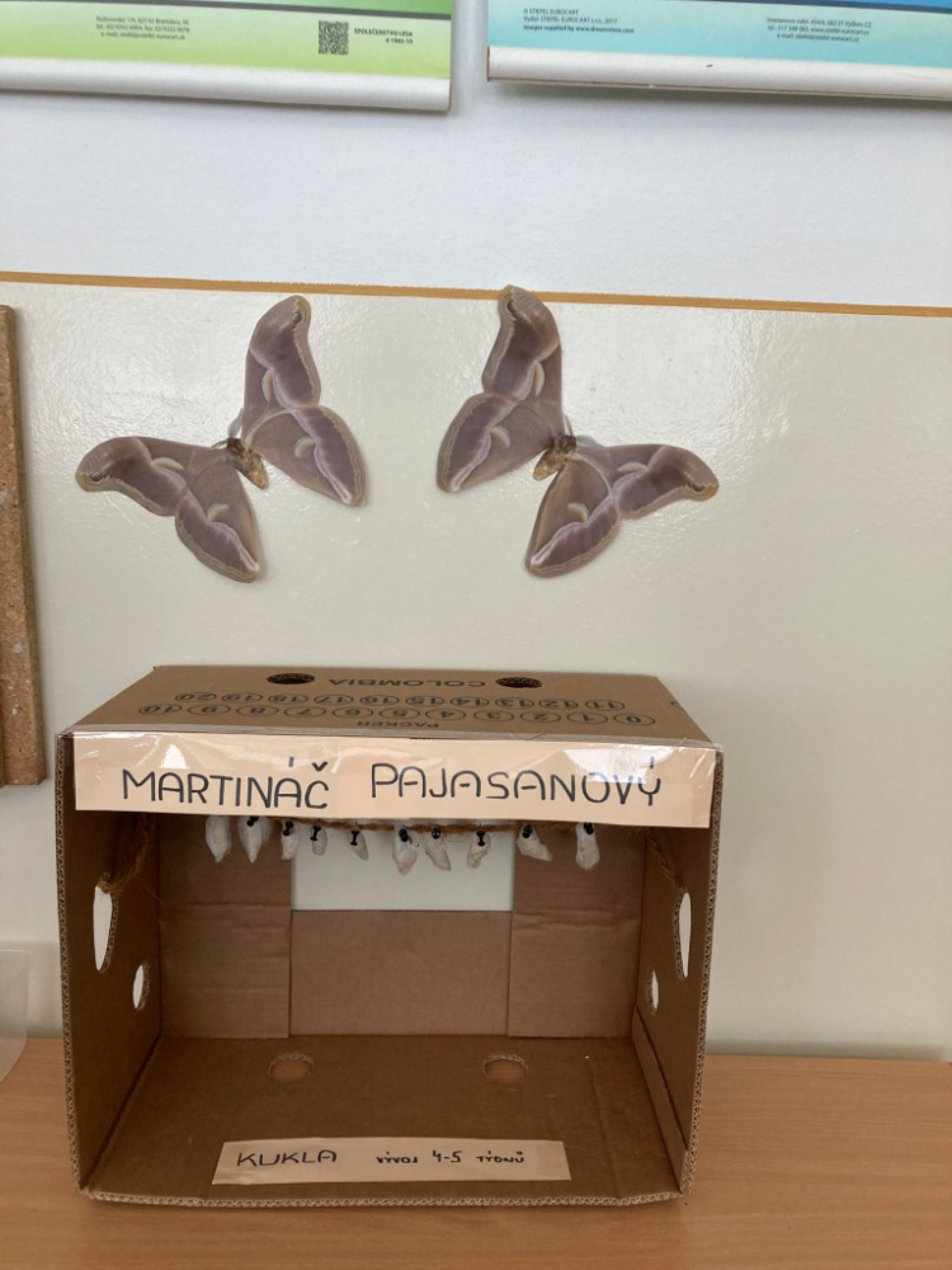 V učebně přírodopisu jsme se pustili do zajímavého chovatelského projektu – odchovu martináče hedvábného (Antheraea pernyi), jednoho z největších nočních motýlů.