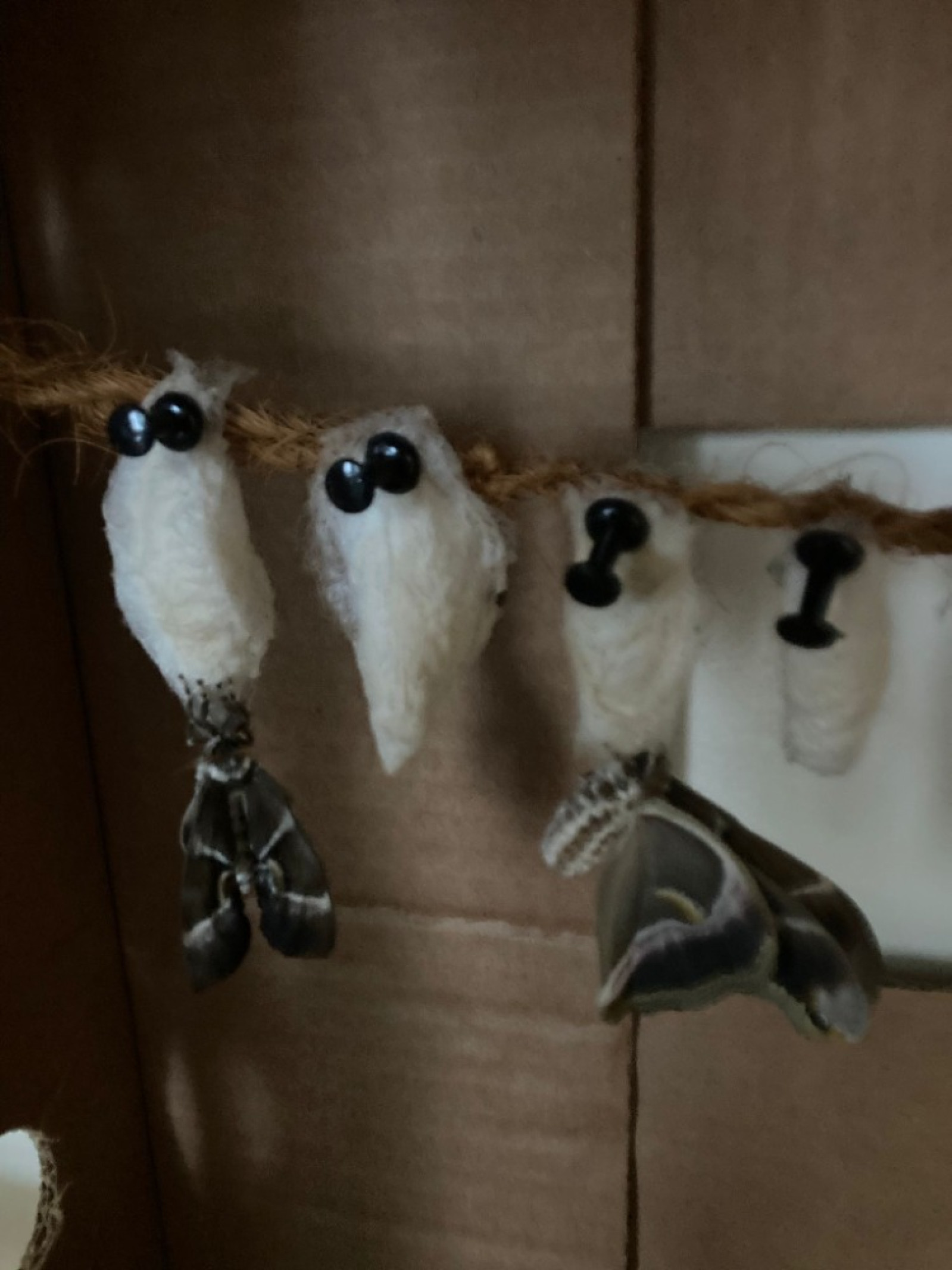 Začátkem září jsme obdrželi 10 kukel, které jsme umístili do učebny. Po zhruba měsíci se vylíhlo 8 krásných motýlů. Umožnili jsme jim klidné prostředí pro páření a samičky brzy nakladly desítky vajíček.