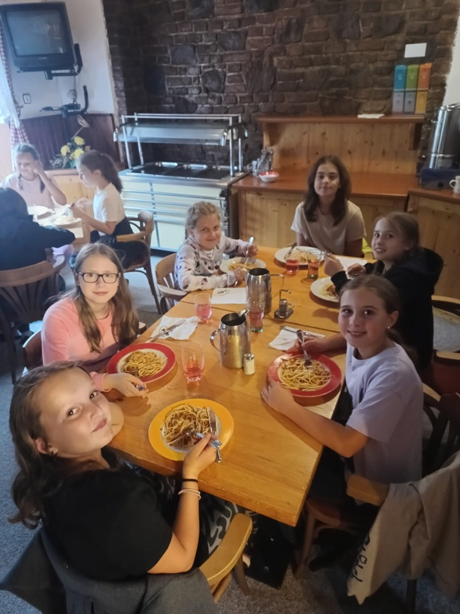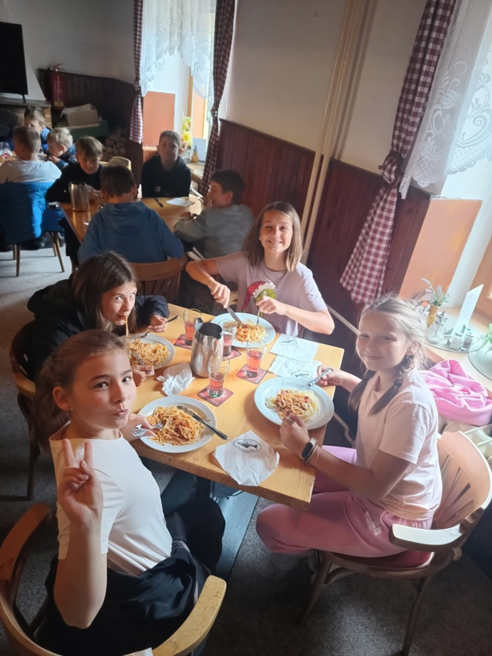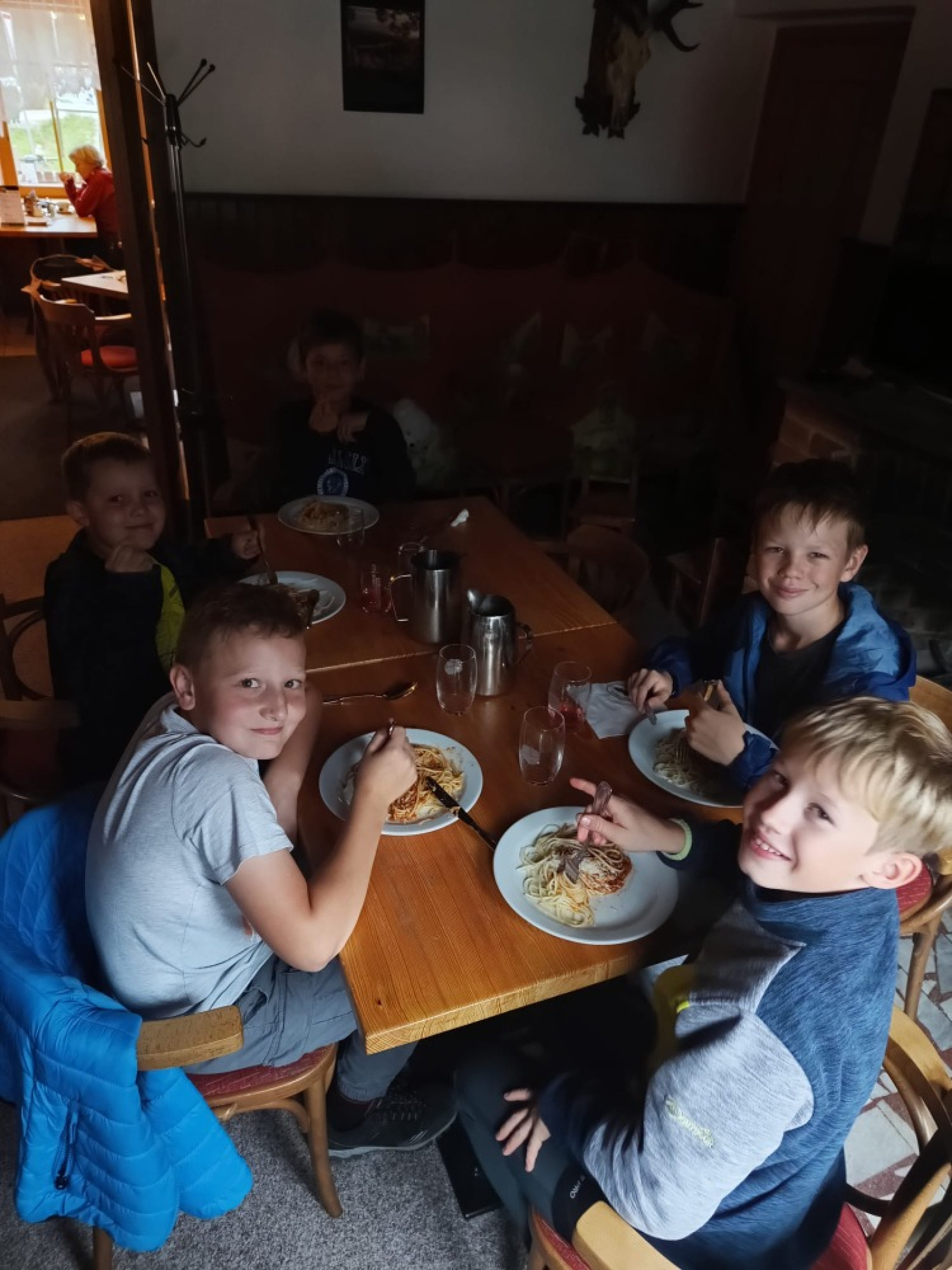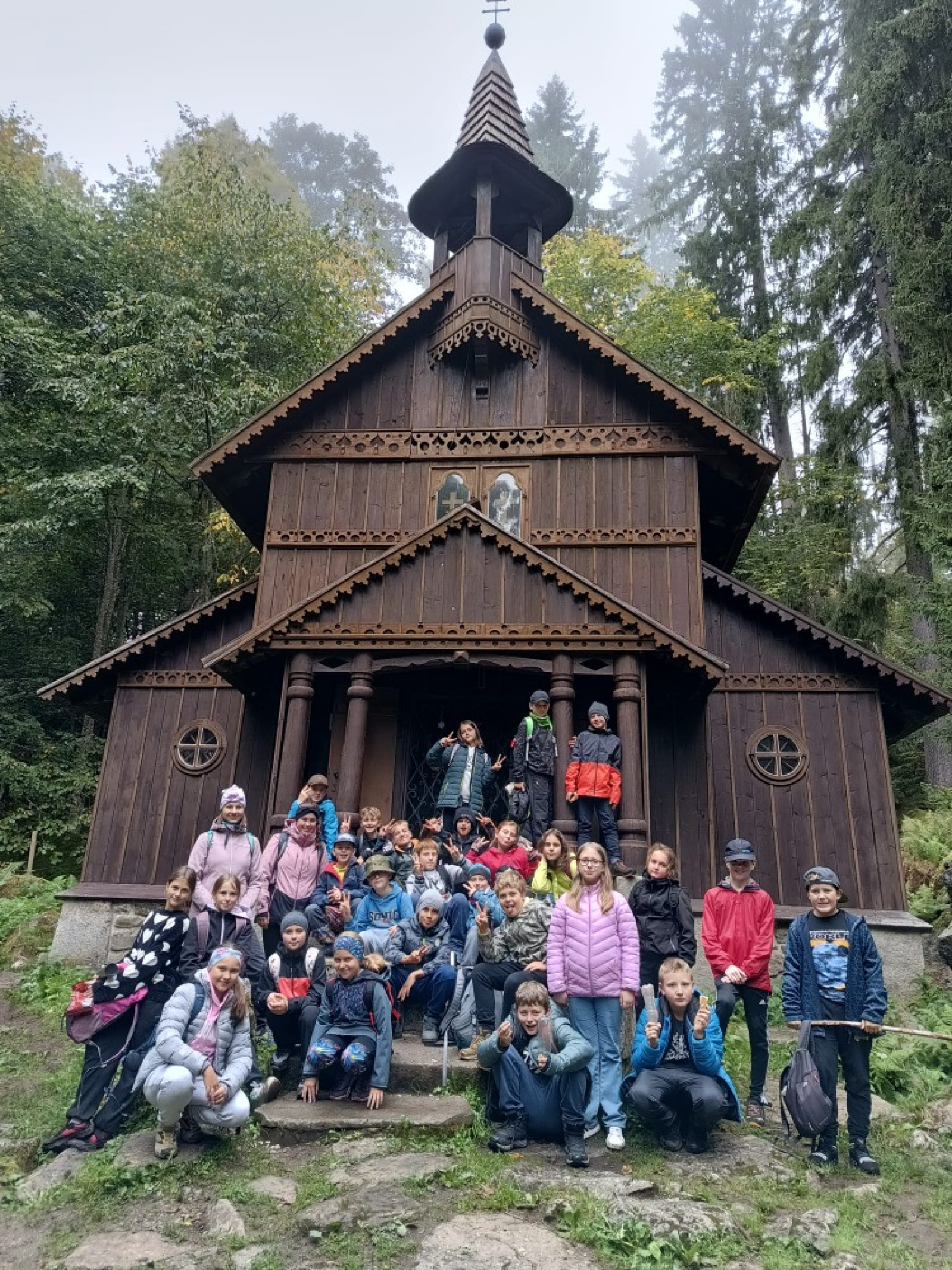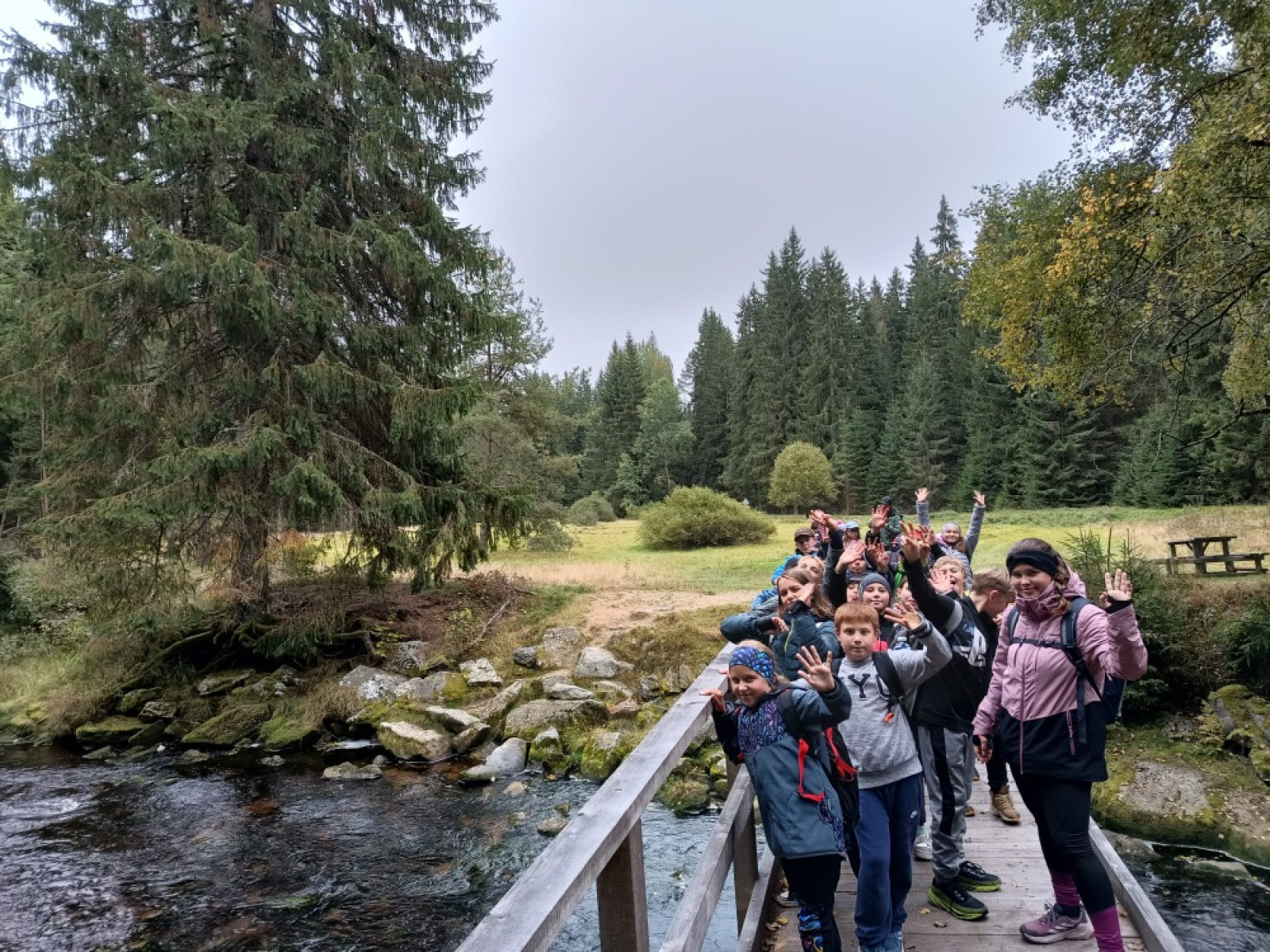Program byl opravdu pestrý. Děti se zúčastnily výukových programů Národního parku Šumava, díky nimž se dozvěděly zajímavosti o přírodě a životě v tomto unikátním prostředí. Druhý den nás čekala velká výzva – 9 km dlouhý výšlap ke Stožecké kapli a na Stožecké skály. Přestože bylo chladno, mlhavo a někteří od samého začátku bojovali s puchýři a nepohodlím, všichni žáci cestu zvládli a dobrá nálada nás neopustila. Možná to bylo i díky místní restauraci, kde nám po celý pobyt moc chutnalo.