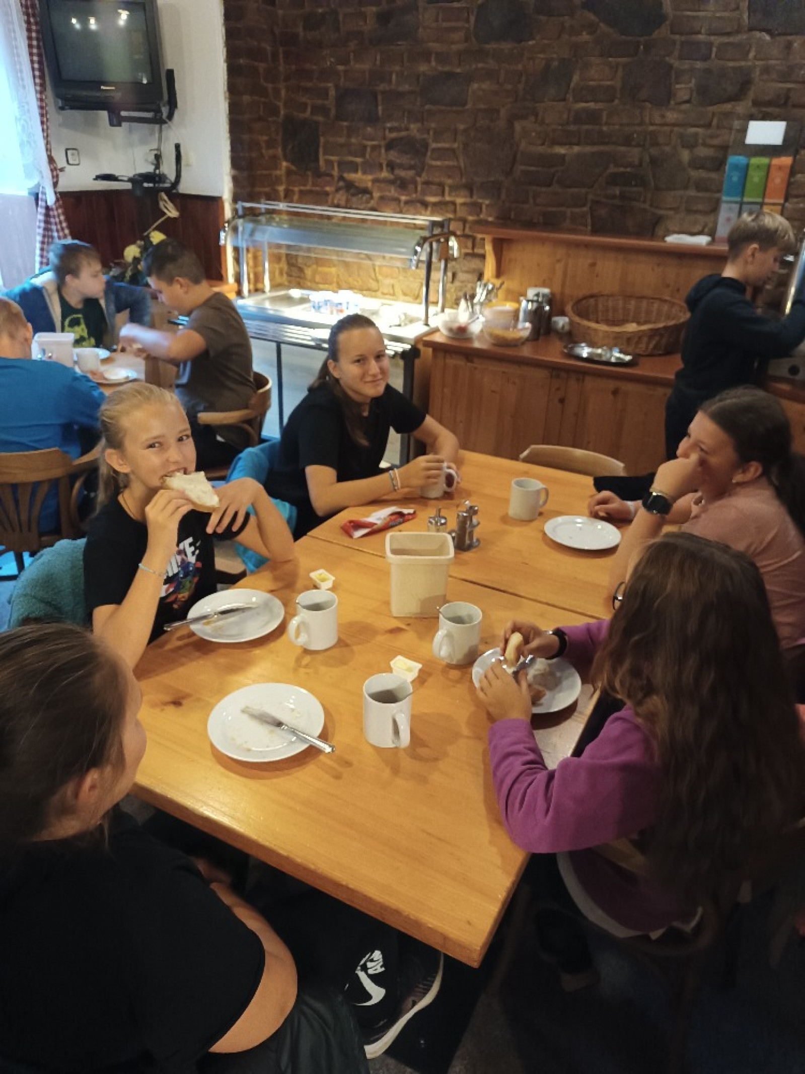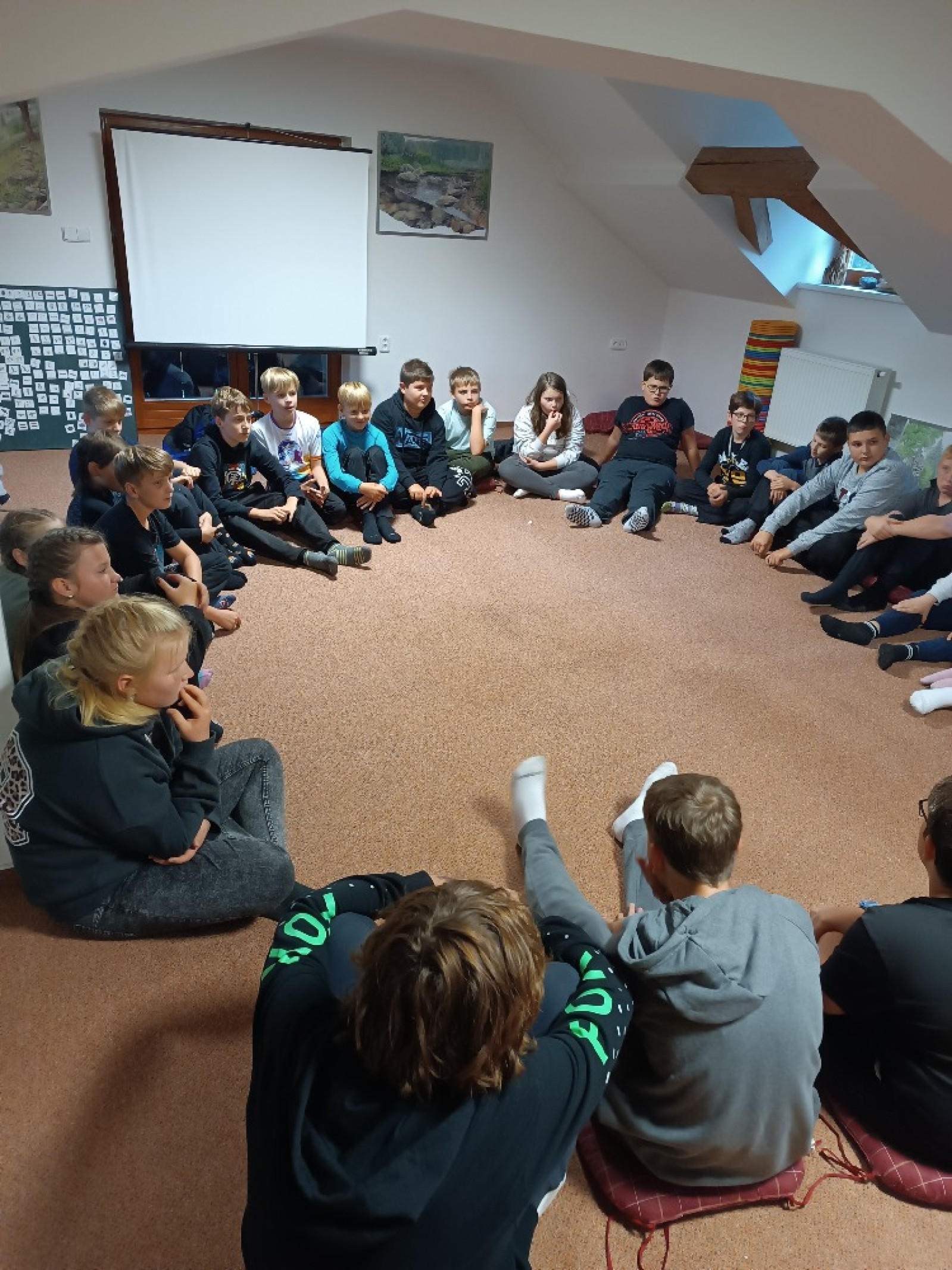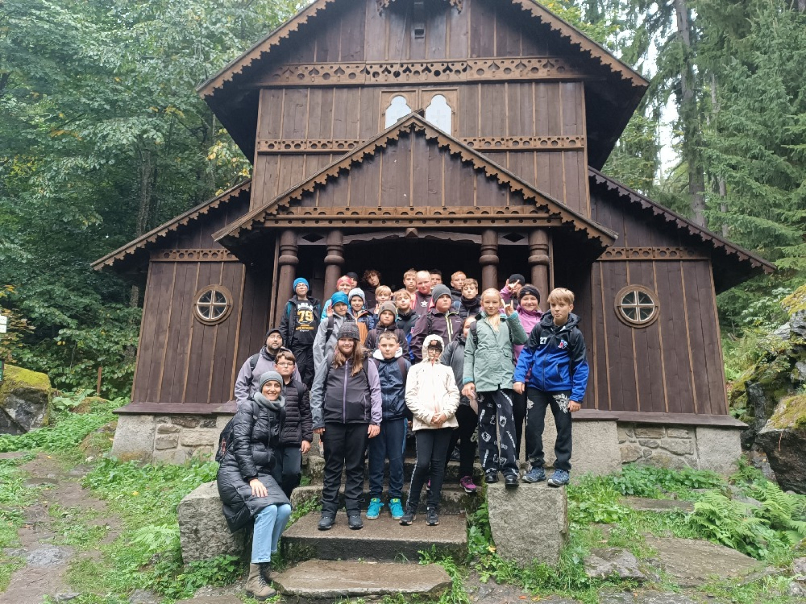 Ve dnech 24. – 26. září proběhl adaptační pobyt ve Stožci pro žáky VI. ročníku, jehož cílem bylo začlenit nové spolužáky do kolektivu, najít nové vazby a zažít nová dobrodružství. Kromě výukového programu, který se skládal z různých her a úkolů na téma Šumava, výšlapu na Stožeckou kapli a tvoření formou plstění, se žáci učili i formovat kolektiv a spolupracovat. Nechybělo ani bodování pokojů, hraní společenských her i večerní diskotéka. Věříme, že se všem adaptační pobyt líbil a že si získanou týmovost přenesou i do školního prostředí.